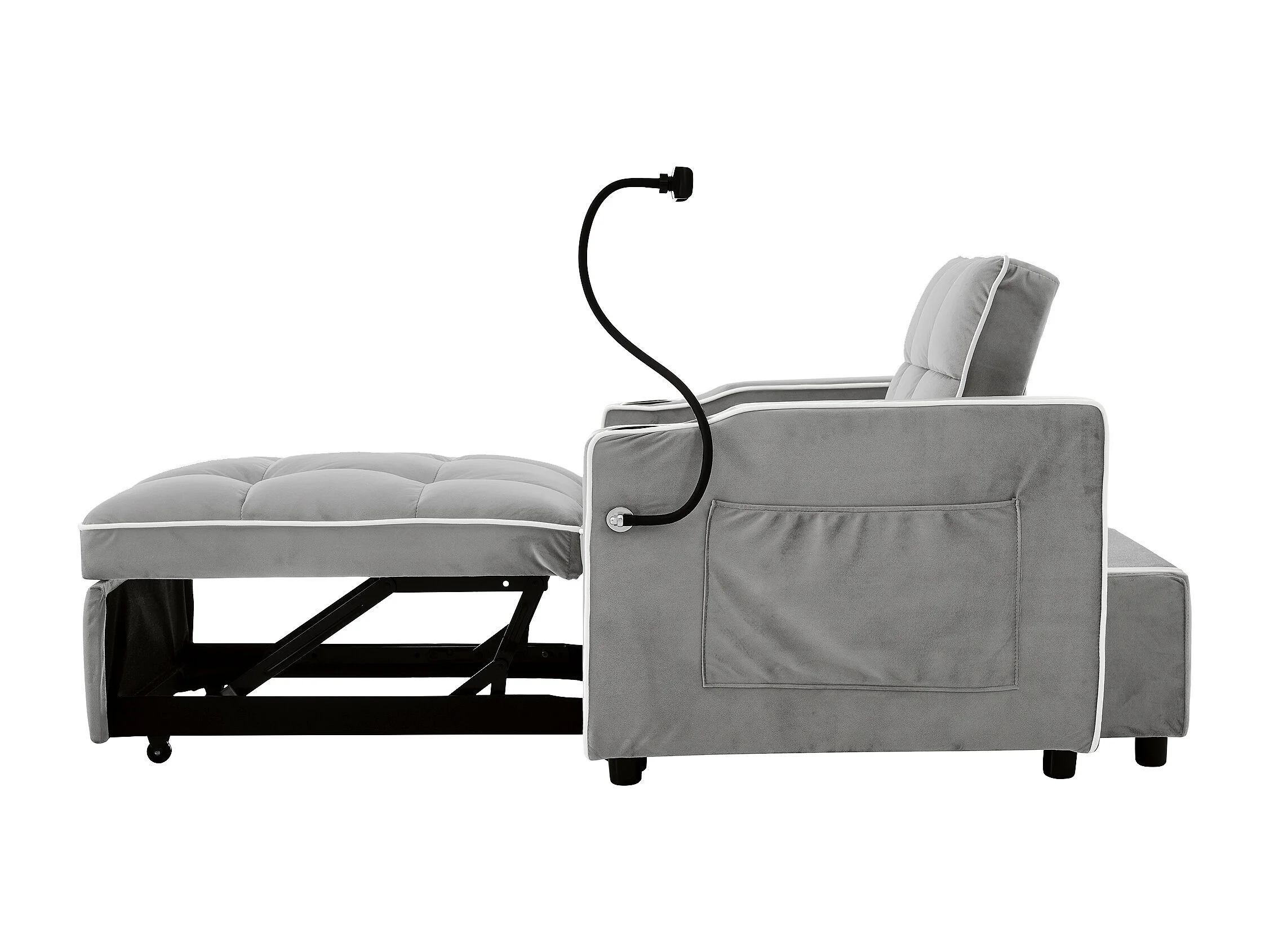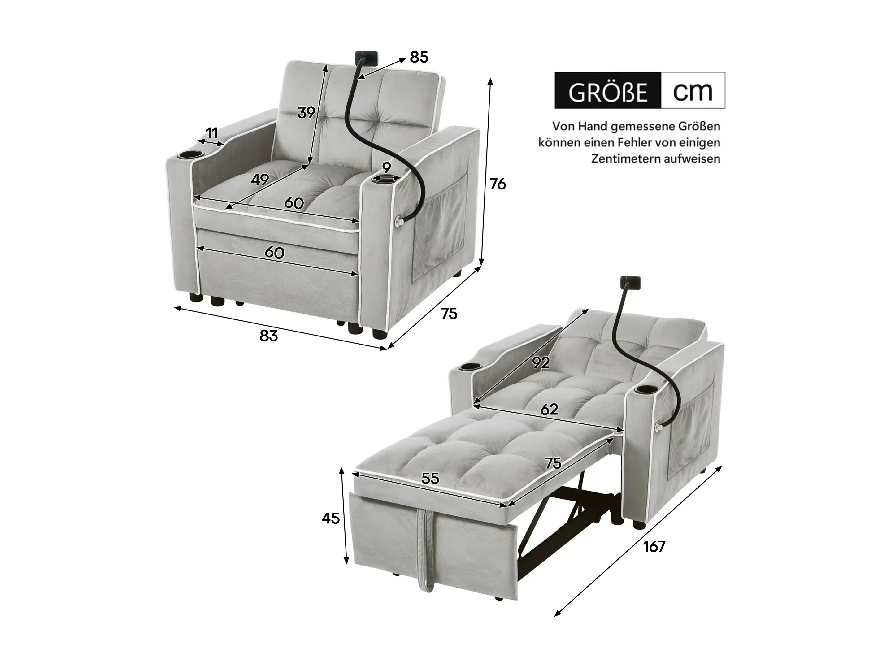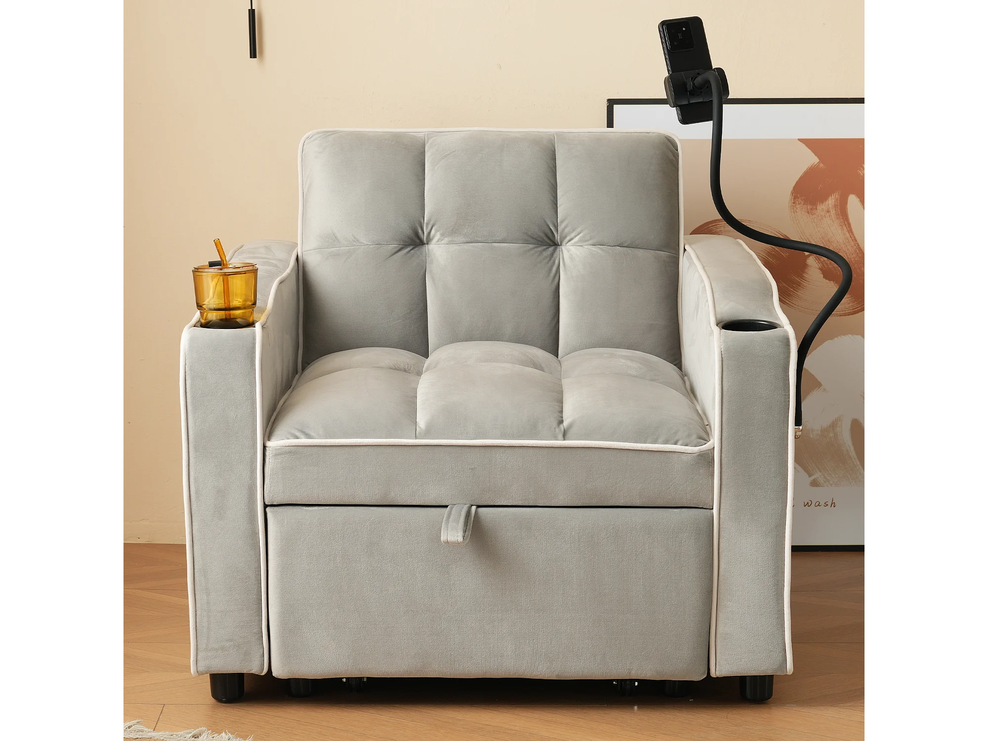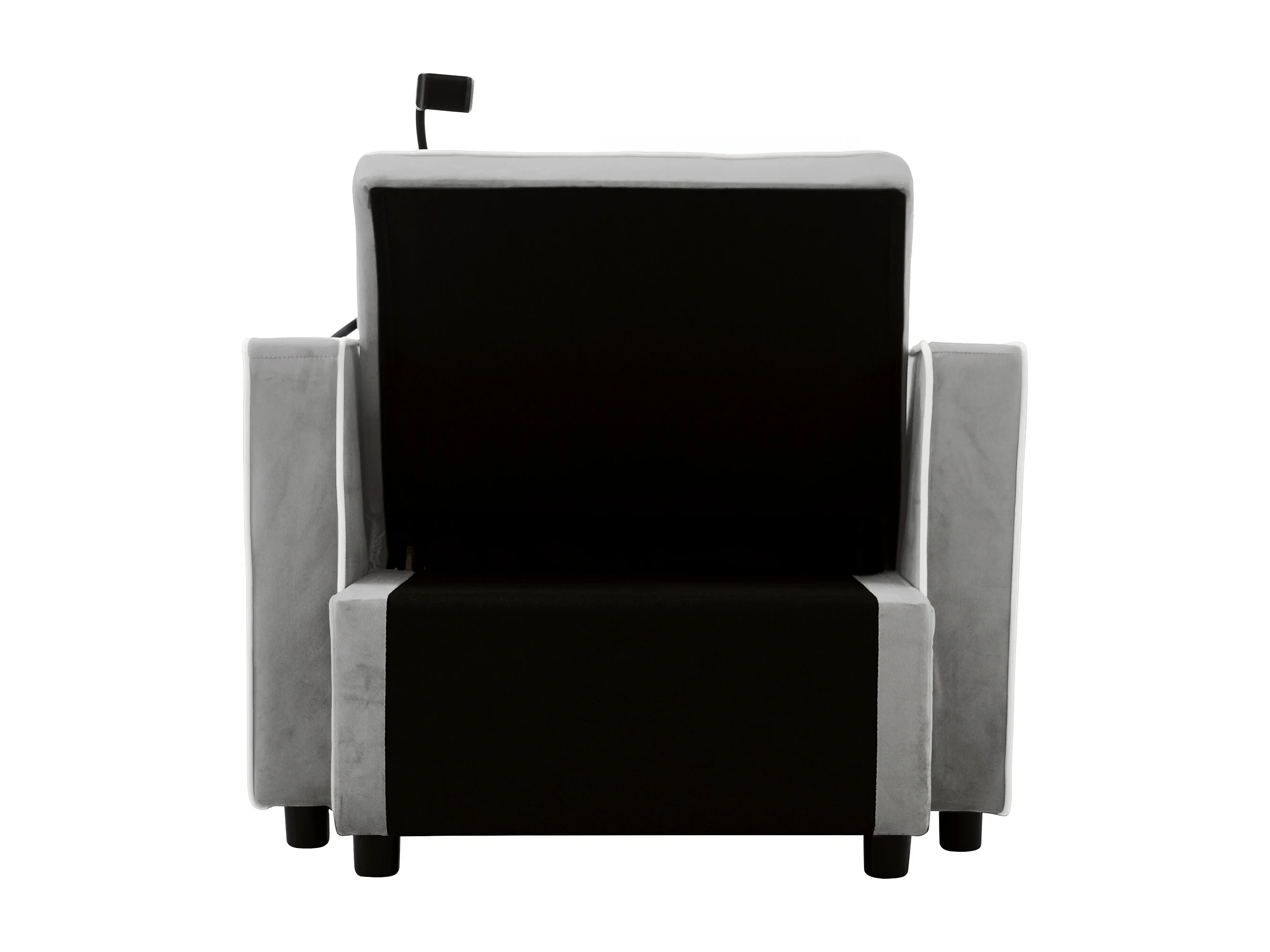 1-zitsbank - Fauteuil met bekerhouder en telefoonhouder - grijs en wit fluweel
