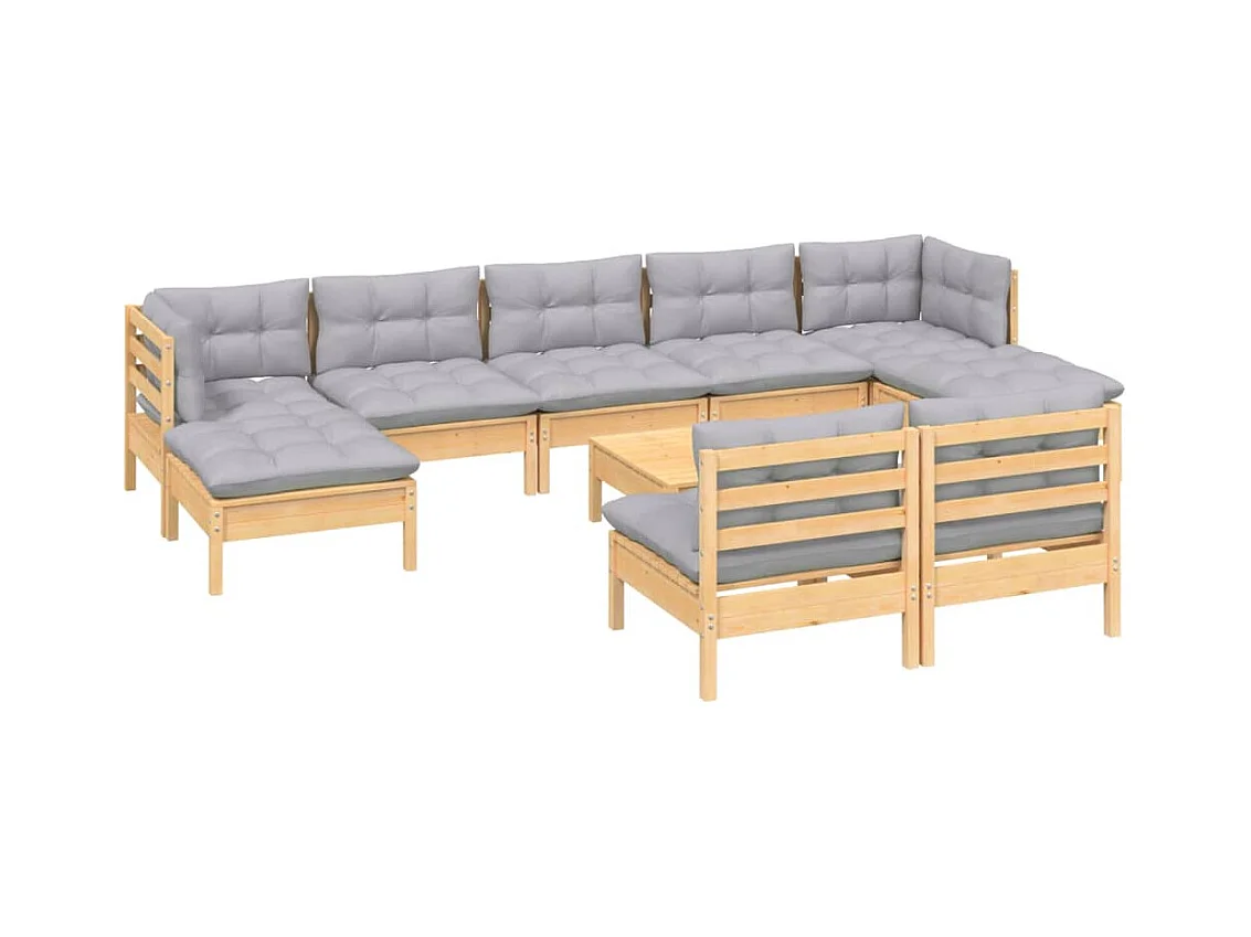 9-delige Tuinset met kussens poly rattan lichtgrijs