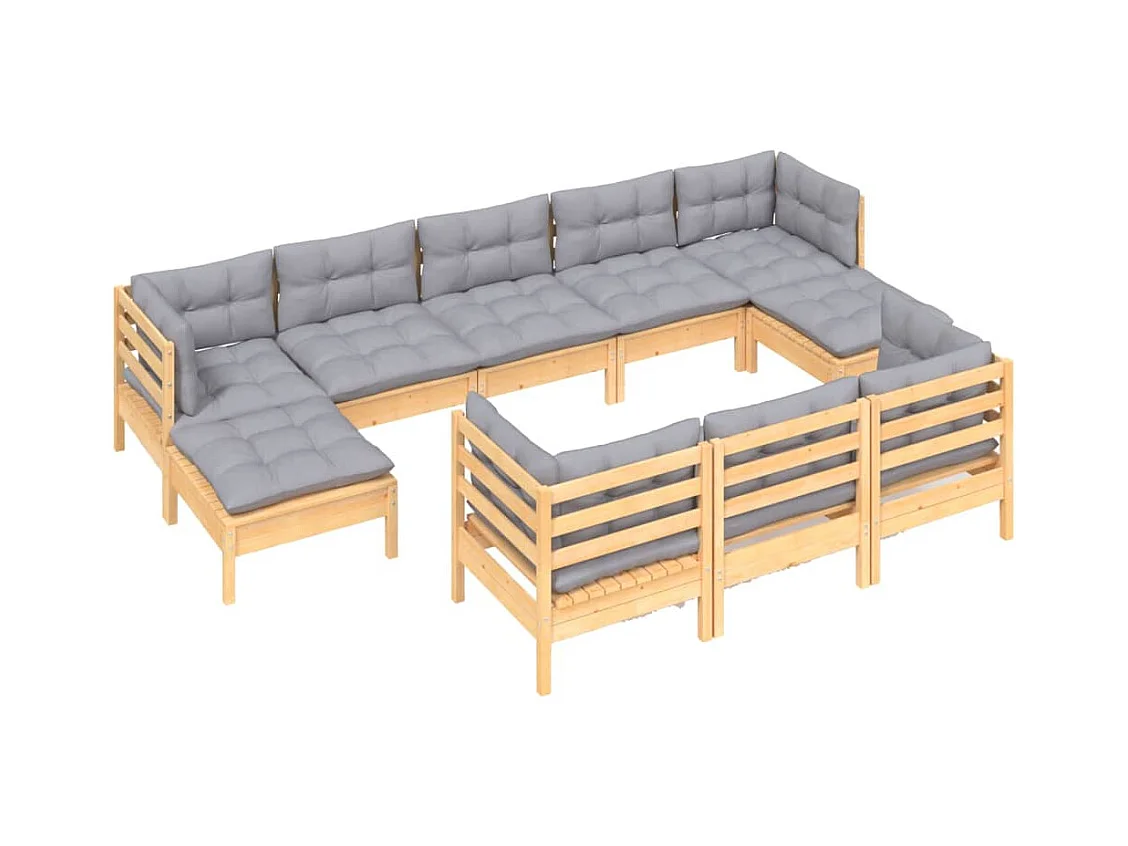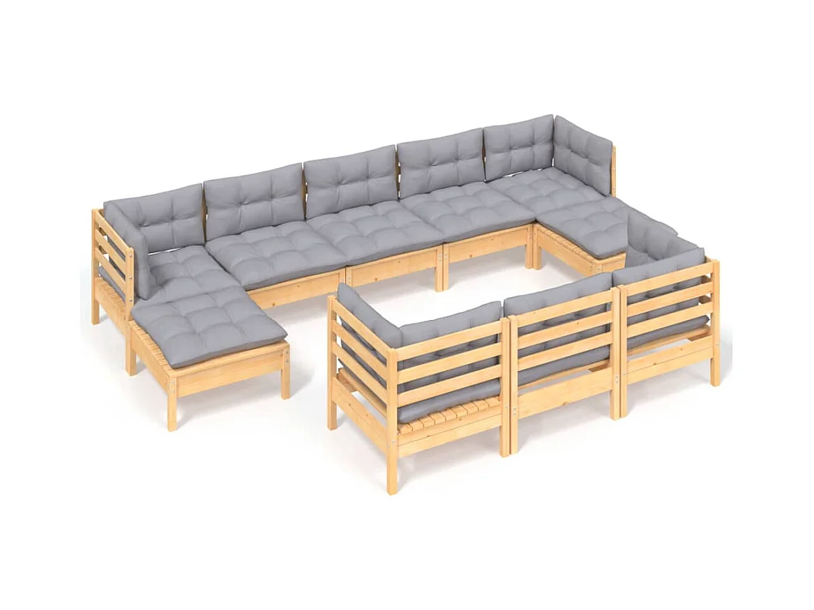 9-delige Tuinset met kussens poly rattan lichtgrijs