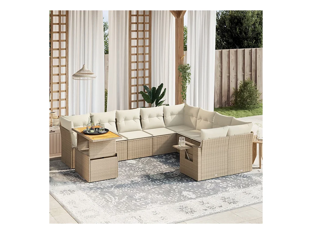 10-delige Loungeset met kussens poly rattan beige