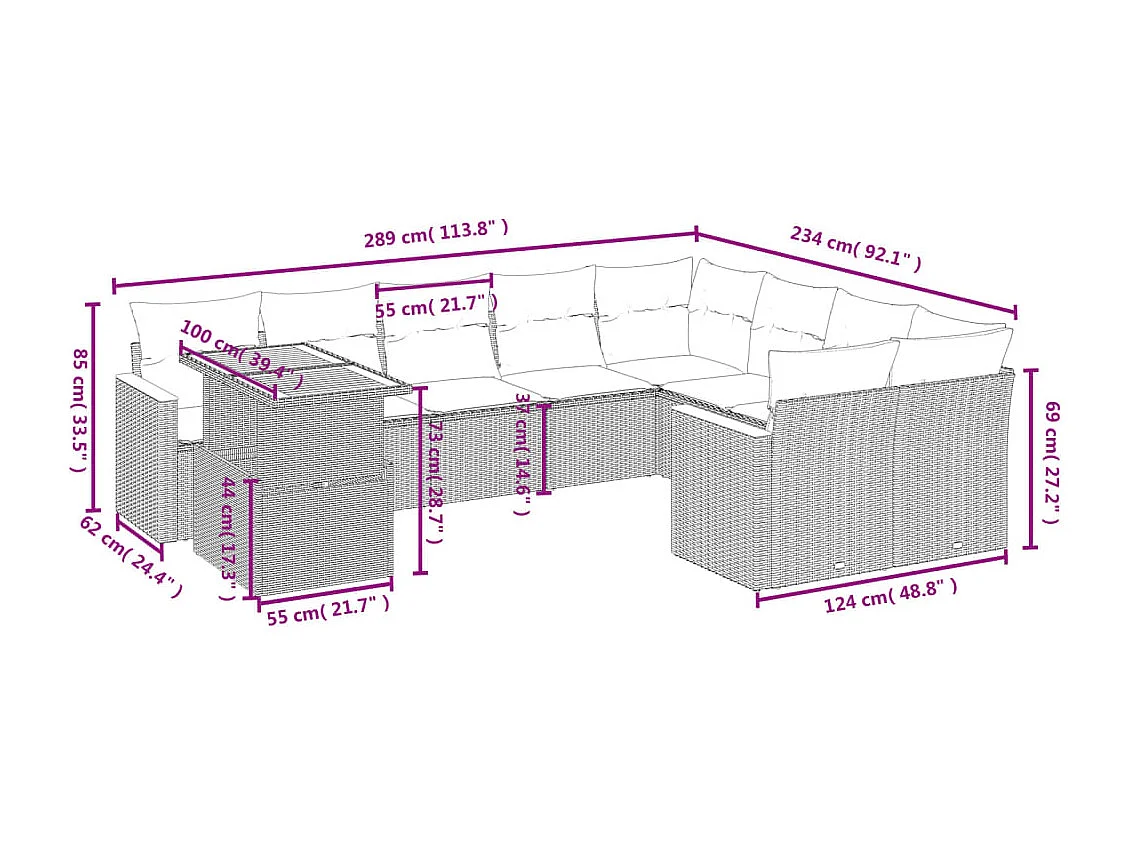 10-delige Loungeset met kussens poly rattan beige