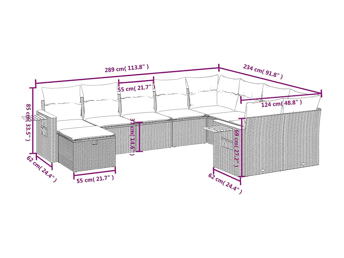10-delige Loungeset met kussens poly rattan beige