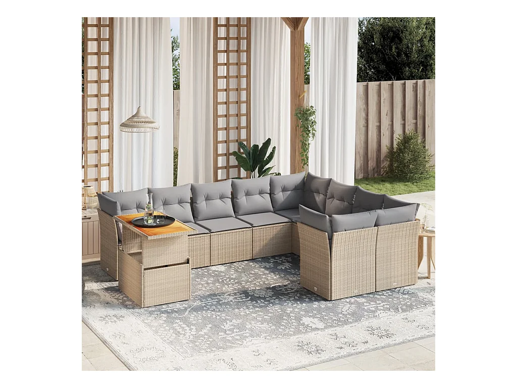 10-delige Loungeset met kussens poly rattan beige