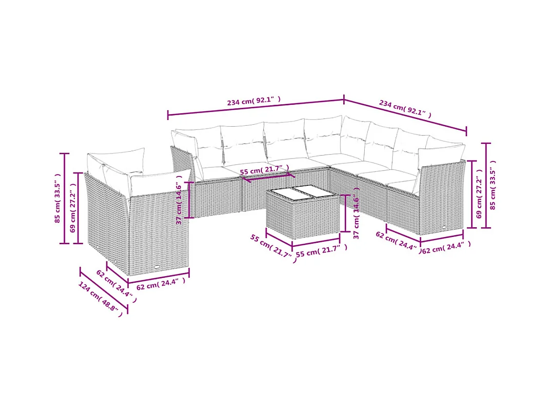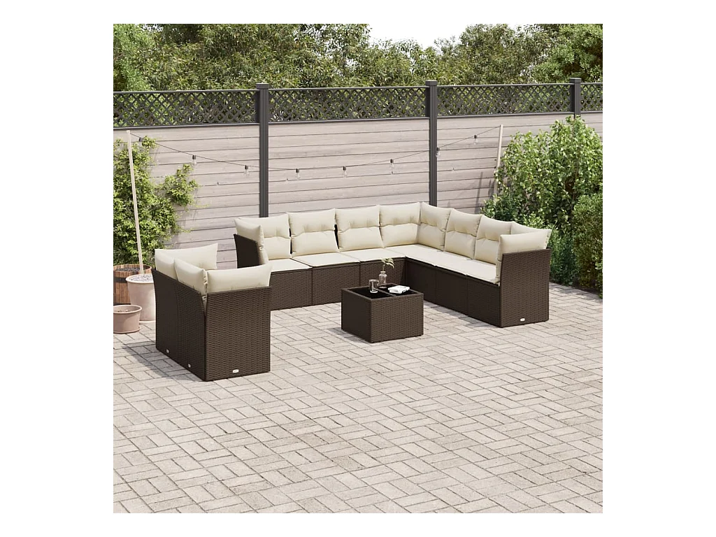 10-delige Loungeset met kussens poly rattan bruin