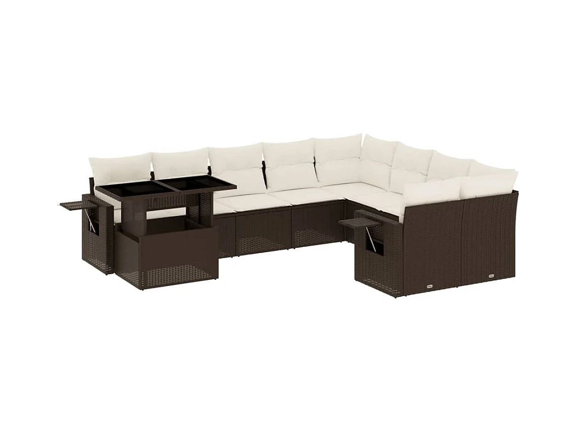 10-delige Loungeset met kussens poly rattan bruin