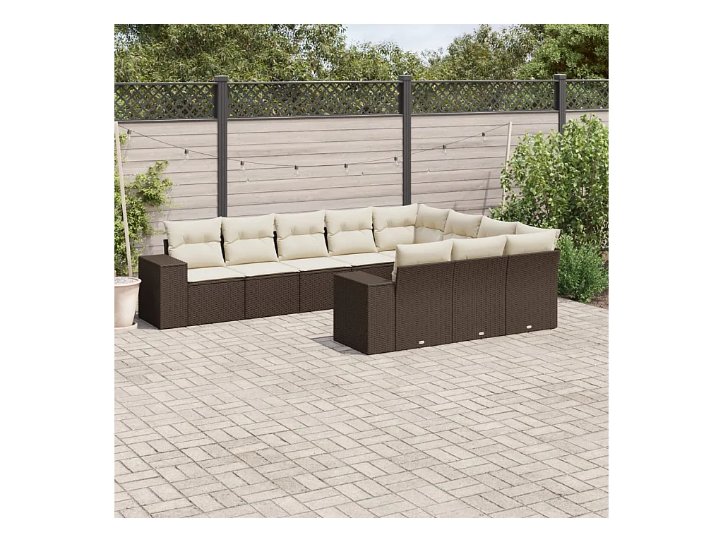 10-delige Loungeset met kussens poly rattan bruin