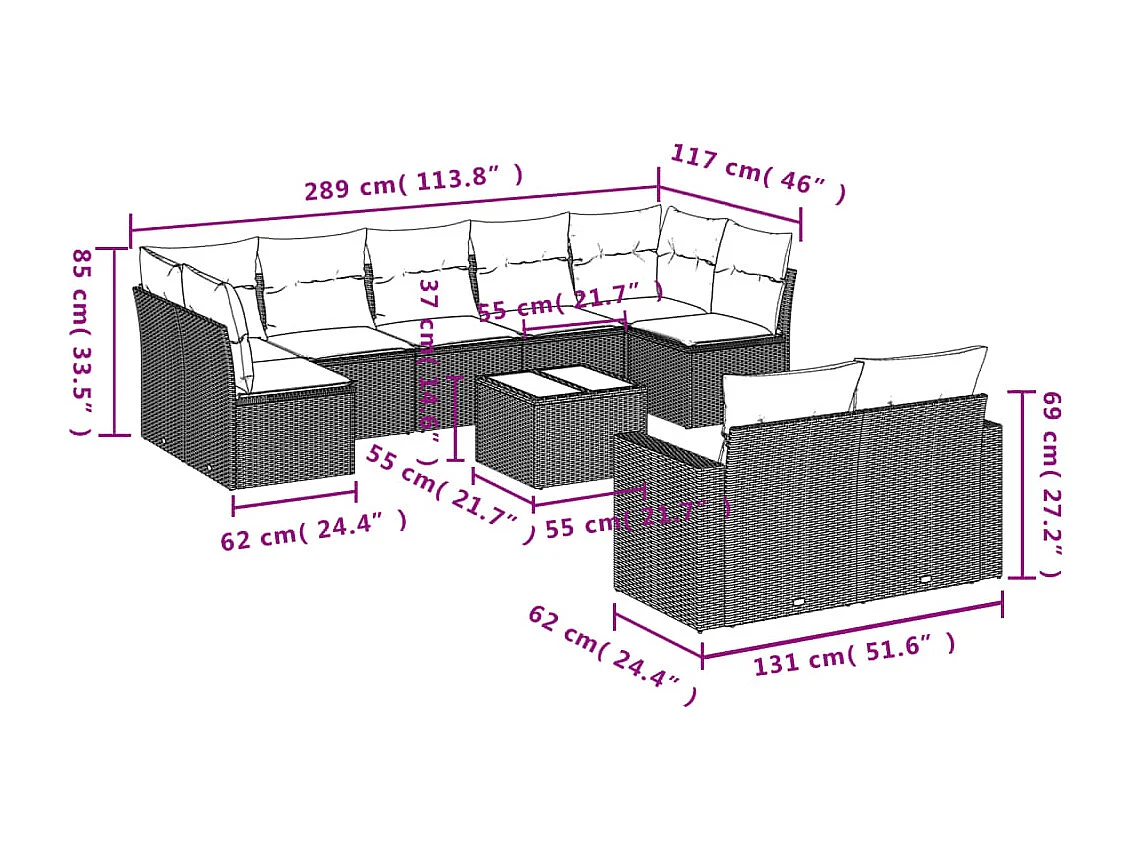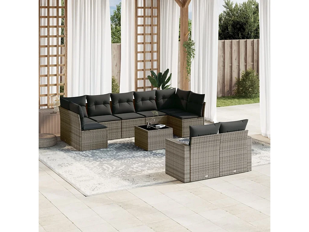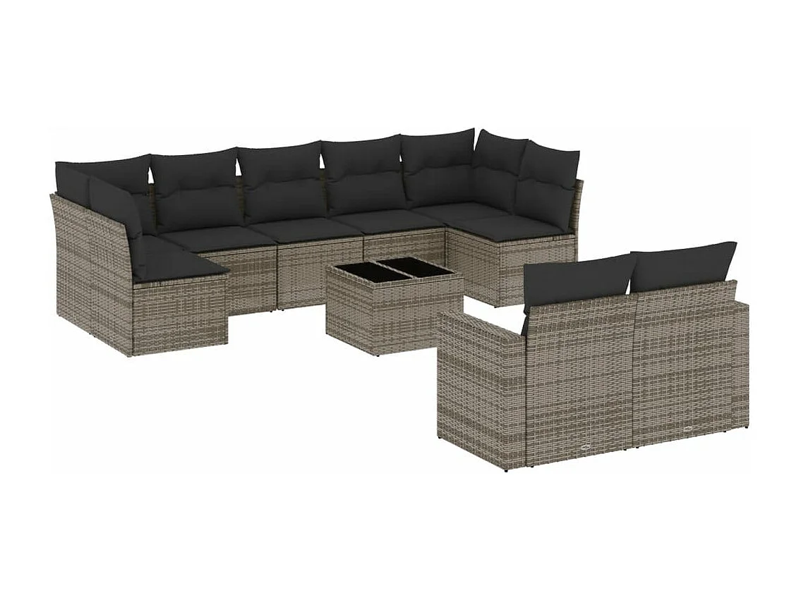 Tuinmeubelen met kussens 10 stuks grijs geweven hars