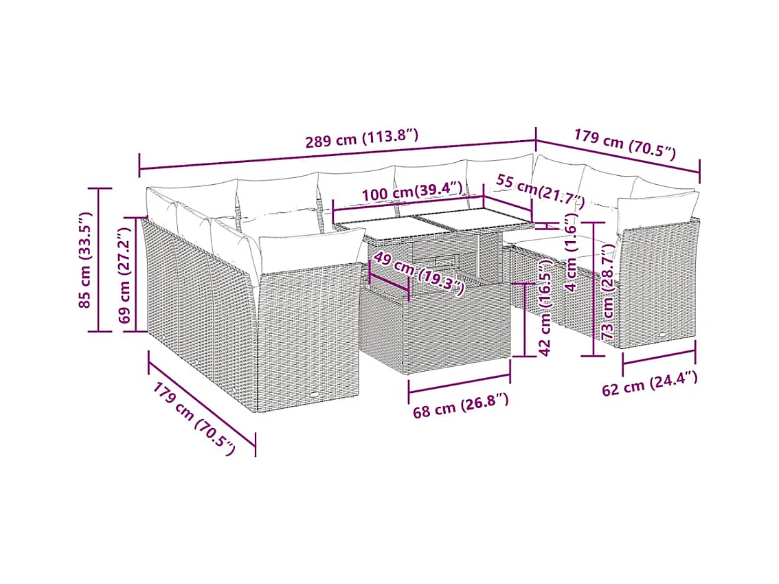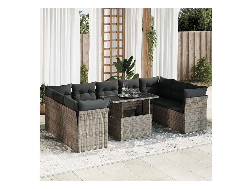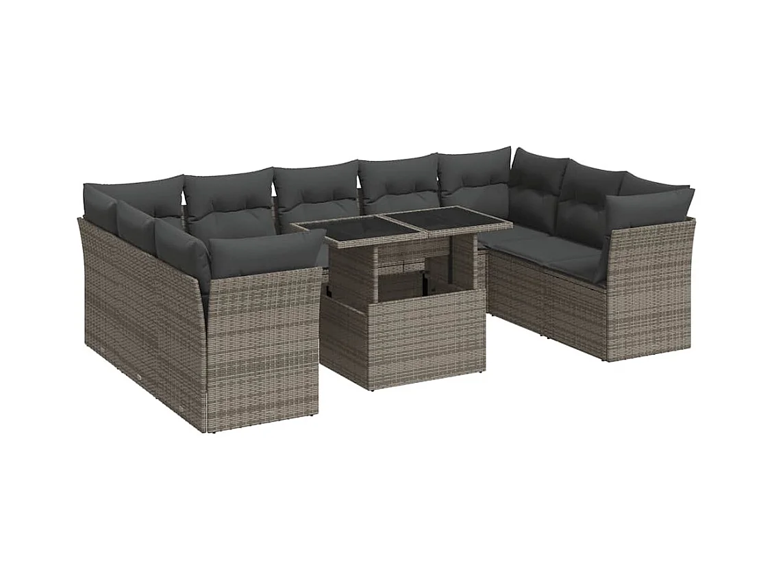 10-delige Loungeset met kussens poly rattan lichtgrijs