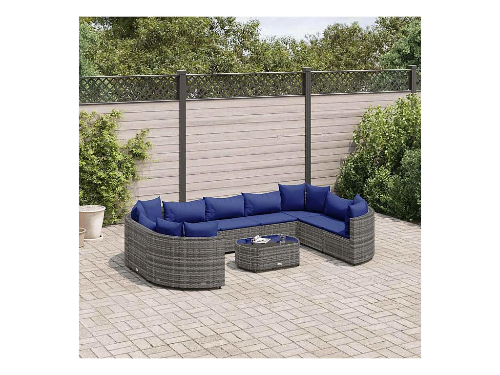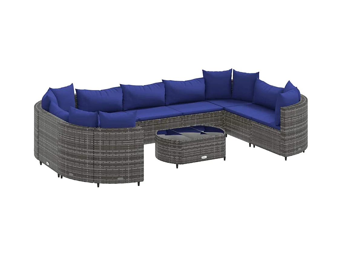 10-delige Loungeset met kussens poly rattan lichtgrijs