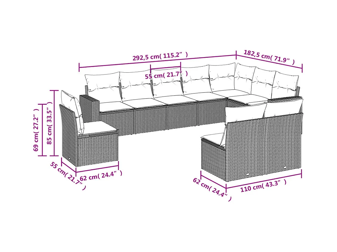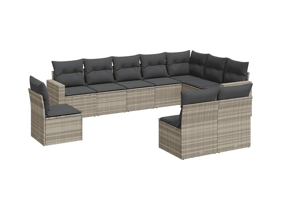 Tuinmeubelen met kussens 10 stuks lichtgrijs geweven hars