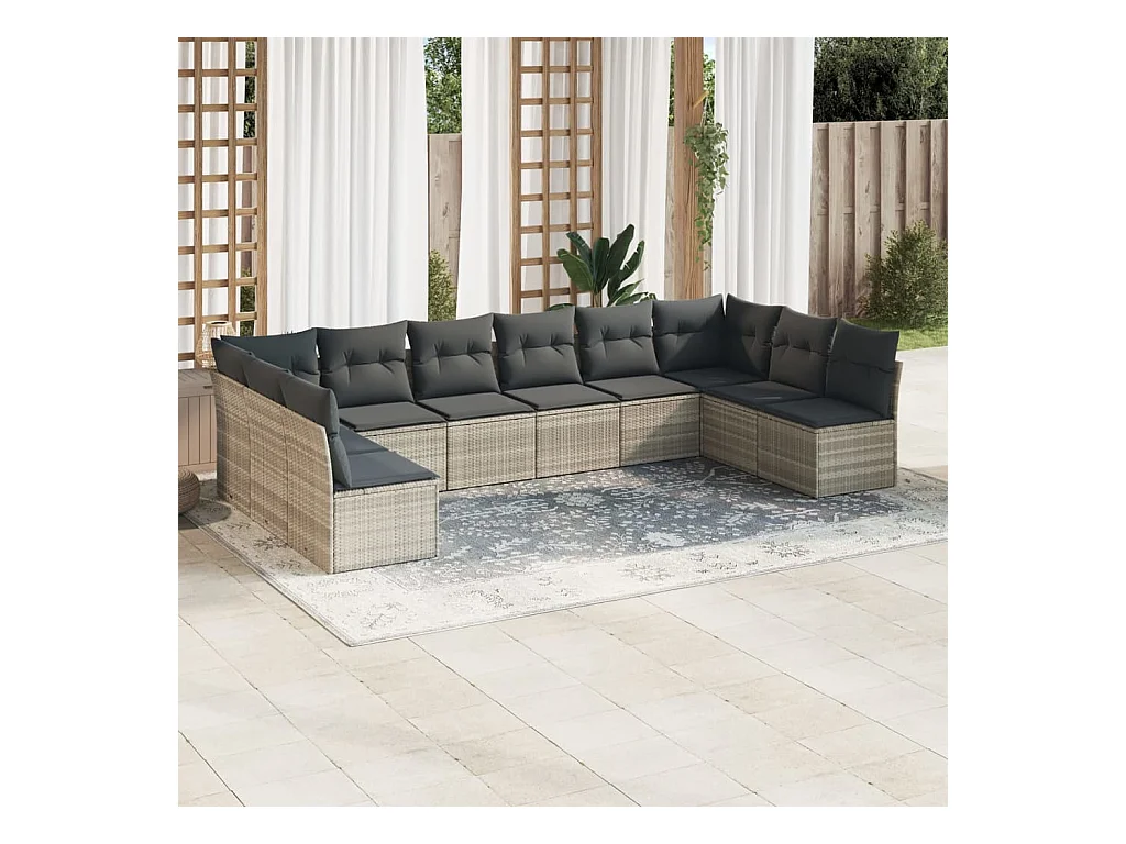 10-delige Loungeset met kussens poly rattan lichtgrijs