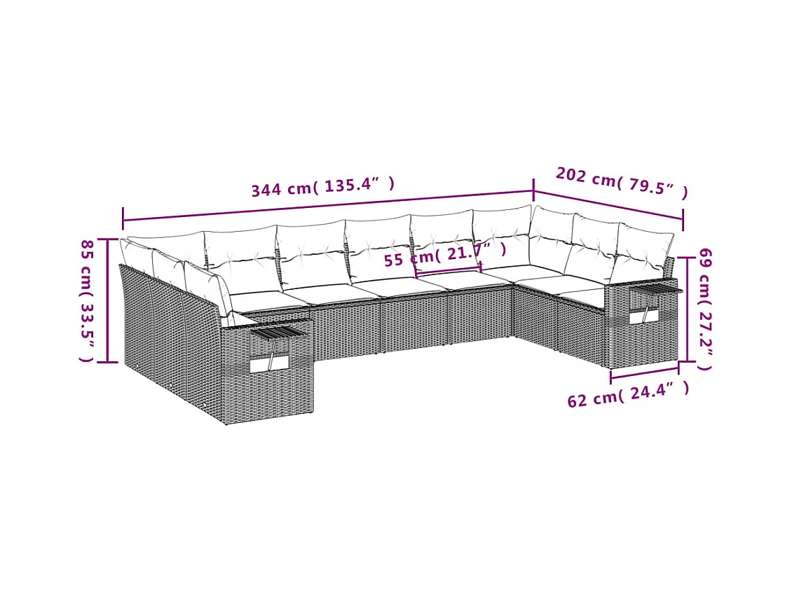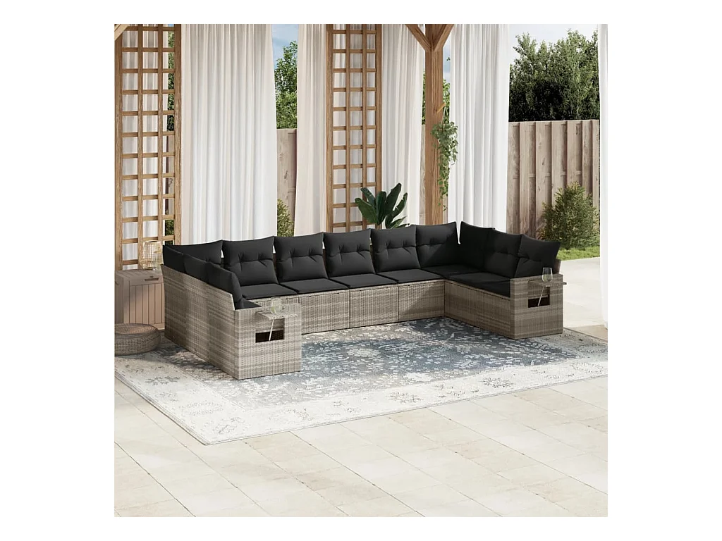 10-delige Loungeset met kussens poly rattan lichtgrijs