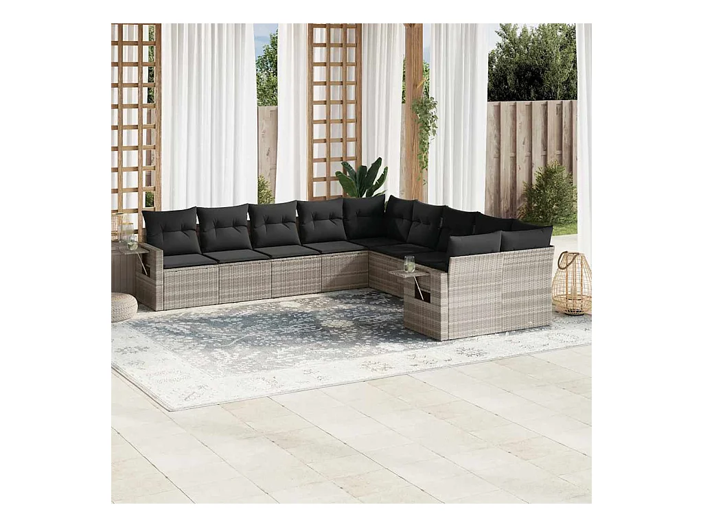 11-delige Loungeset met kussens poly rattan lichtgrijs