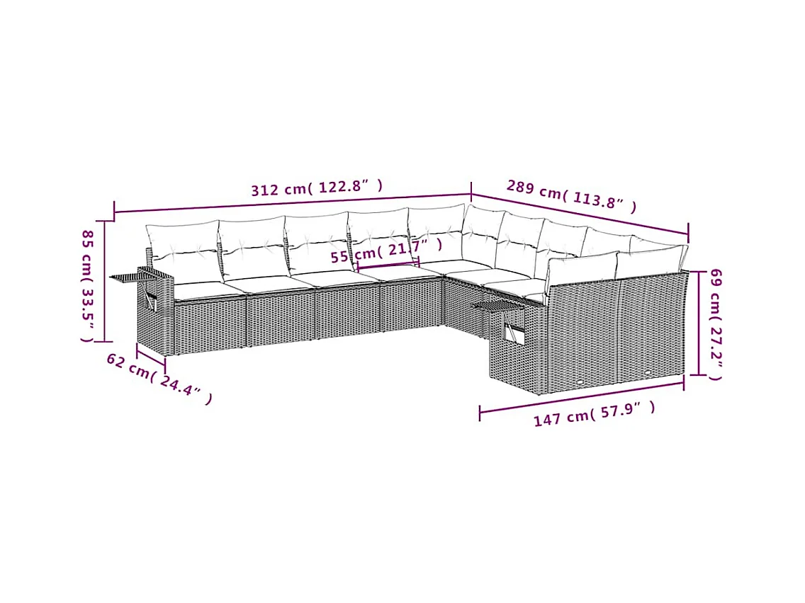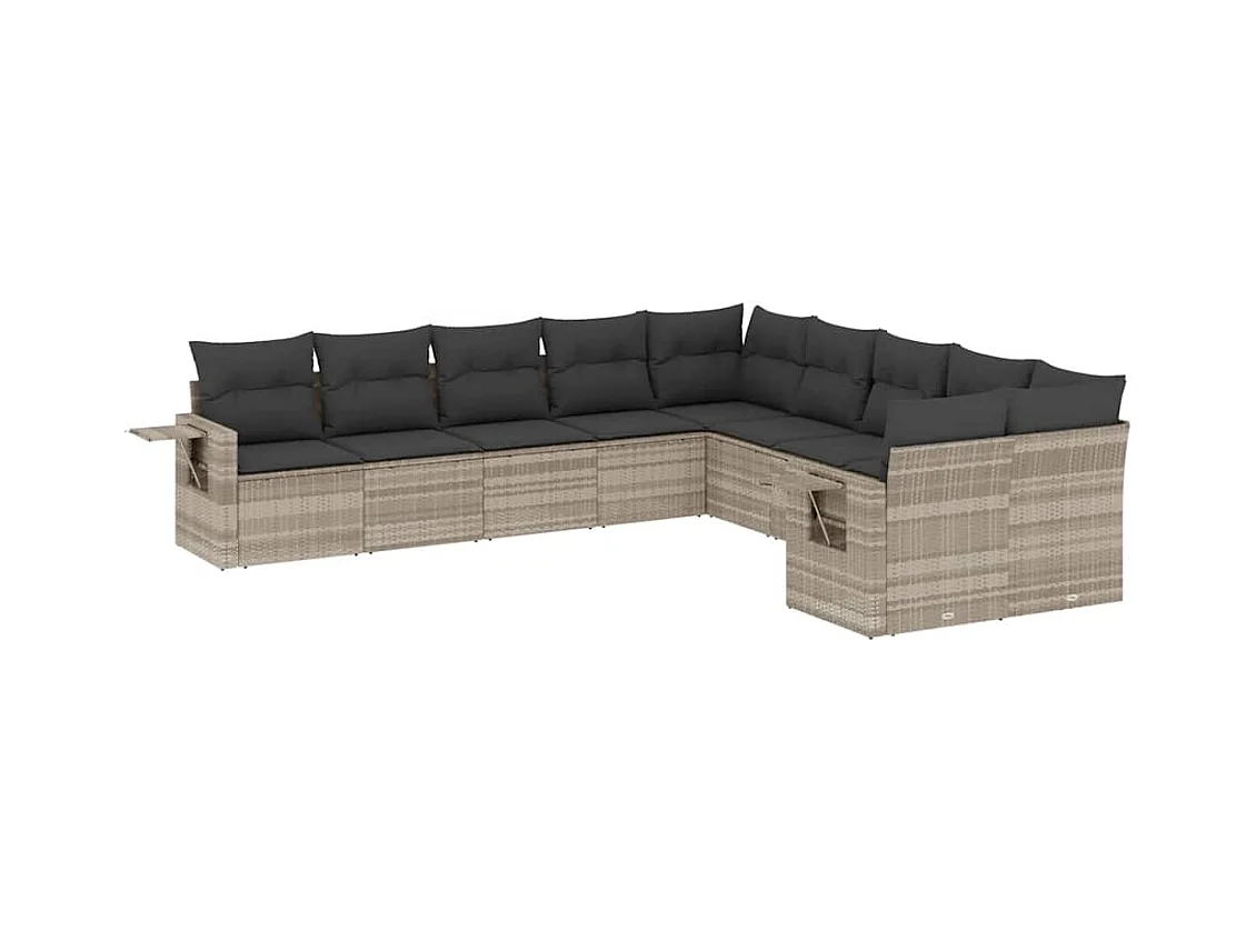 10-delige Loungeset met kussens poly rattan lichtgrijs