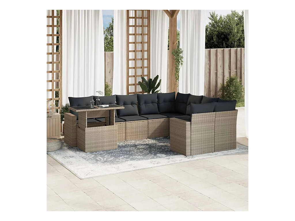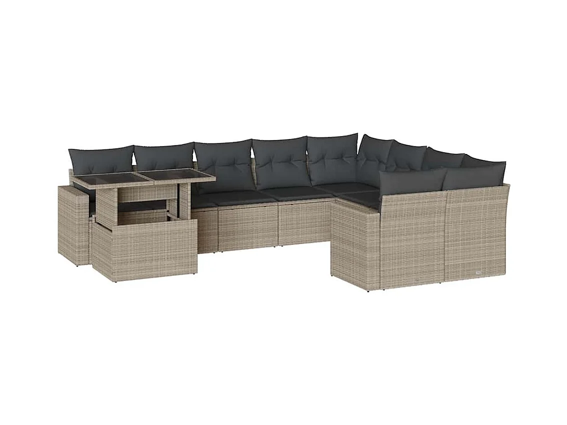 10-delige Loungeset met kussens poly rattan lichtgrijs