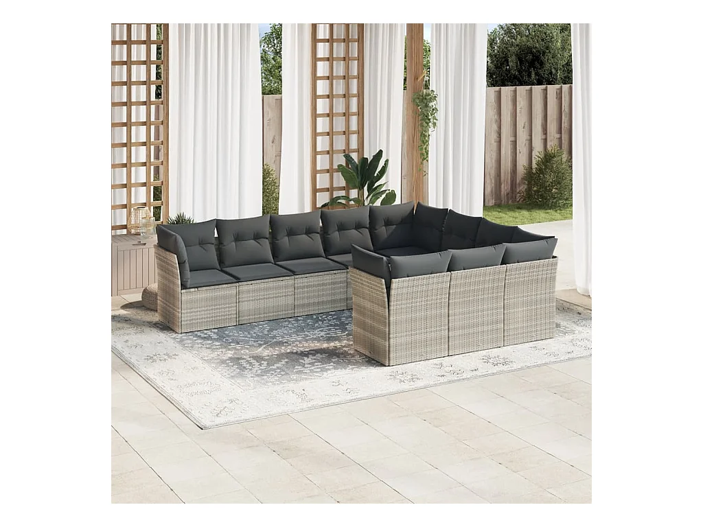 10-delige Loungeset met kussens poly rattan lichtgrijs