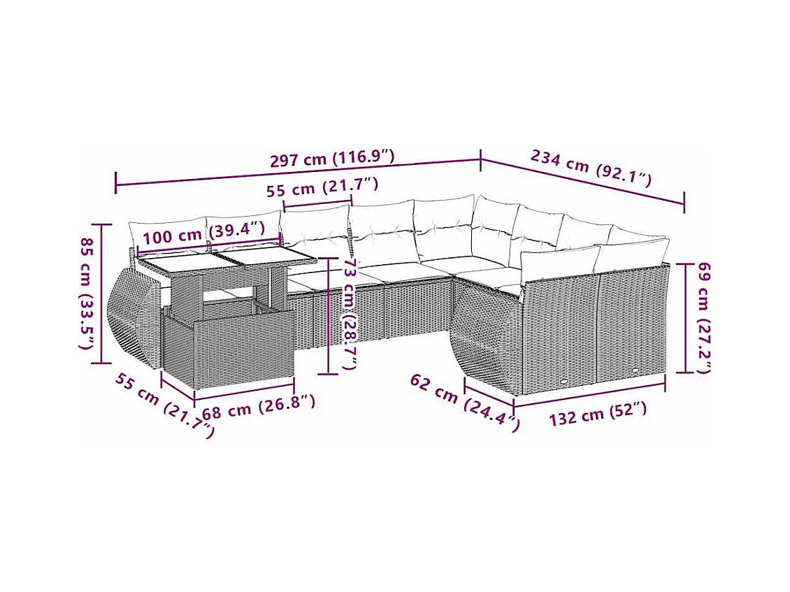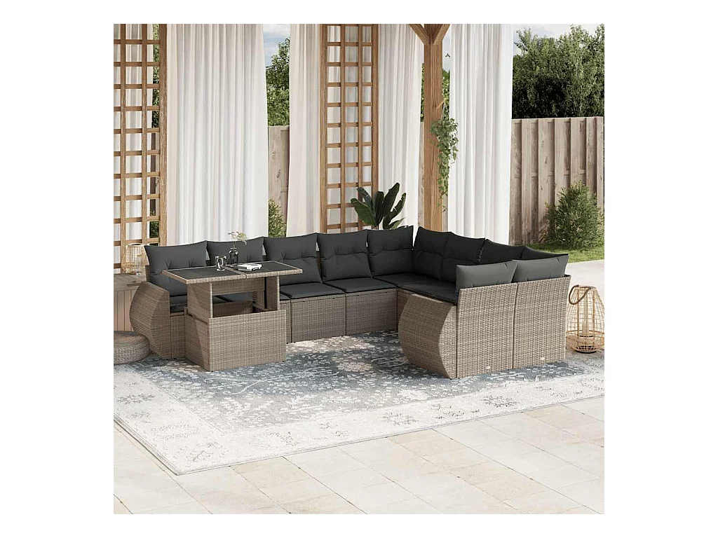 10-delige Loungeset met kussens poly rattan lichtgrijs