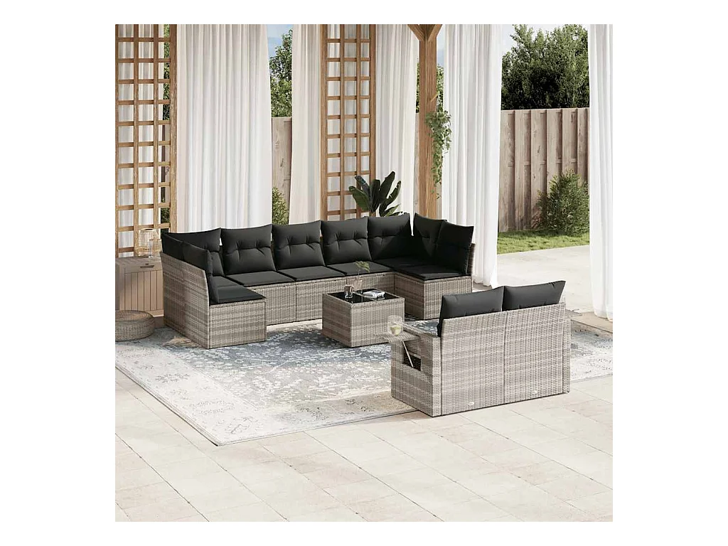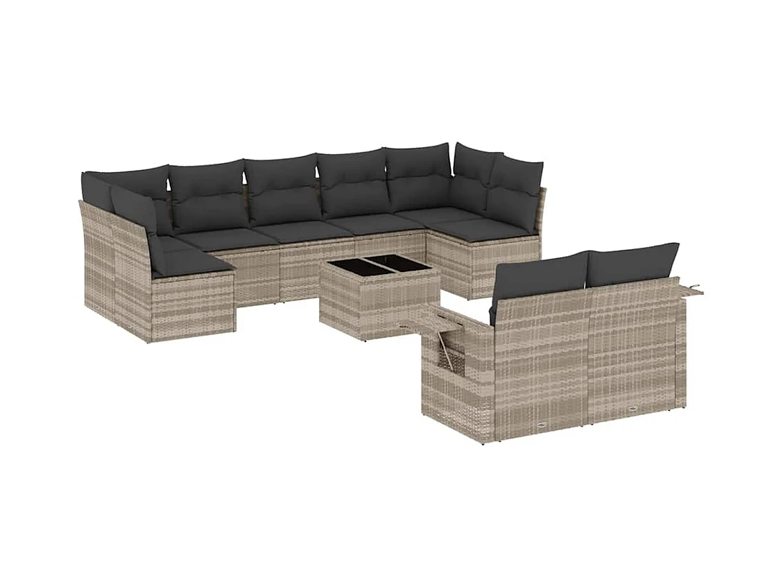 10-delige Loungeset met kussens poly rattan lichtgrijs