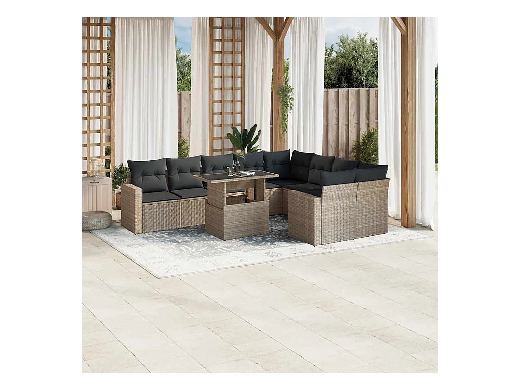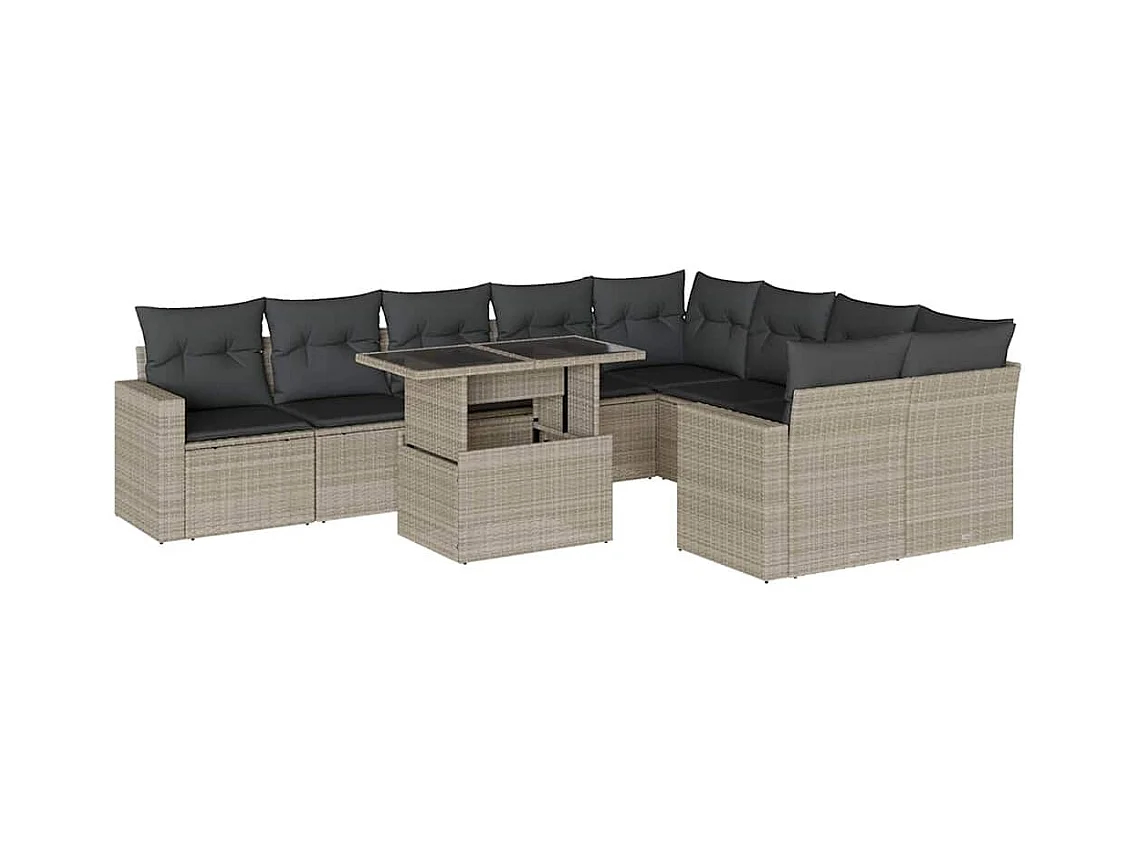 10-delige Loungeset met kussens poly rattan lichtgrijs