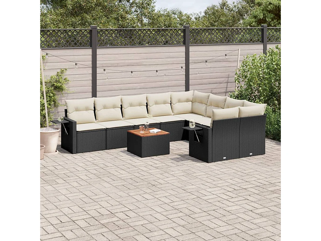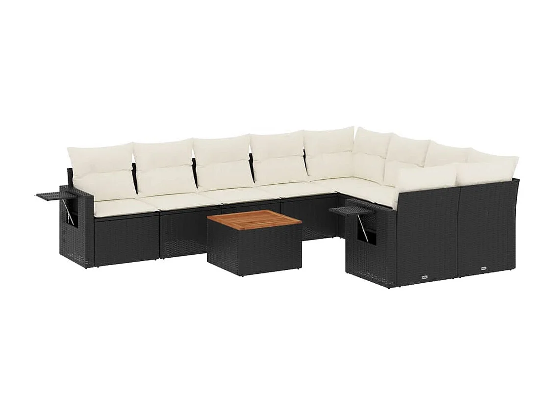 Tuinmeubelen 10 stuks met zwart geweven harskussens