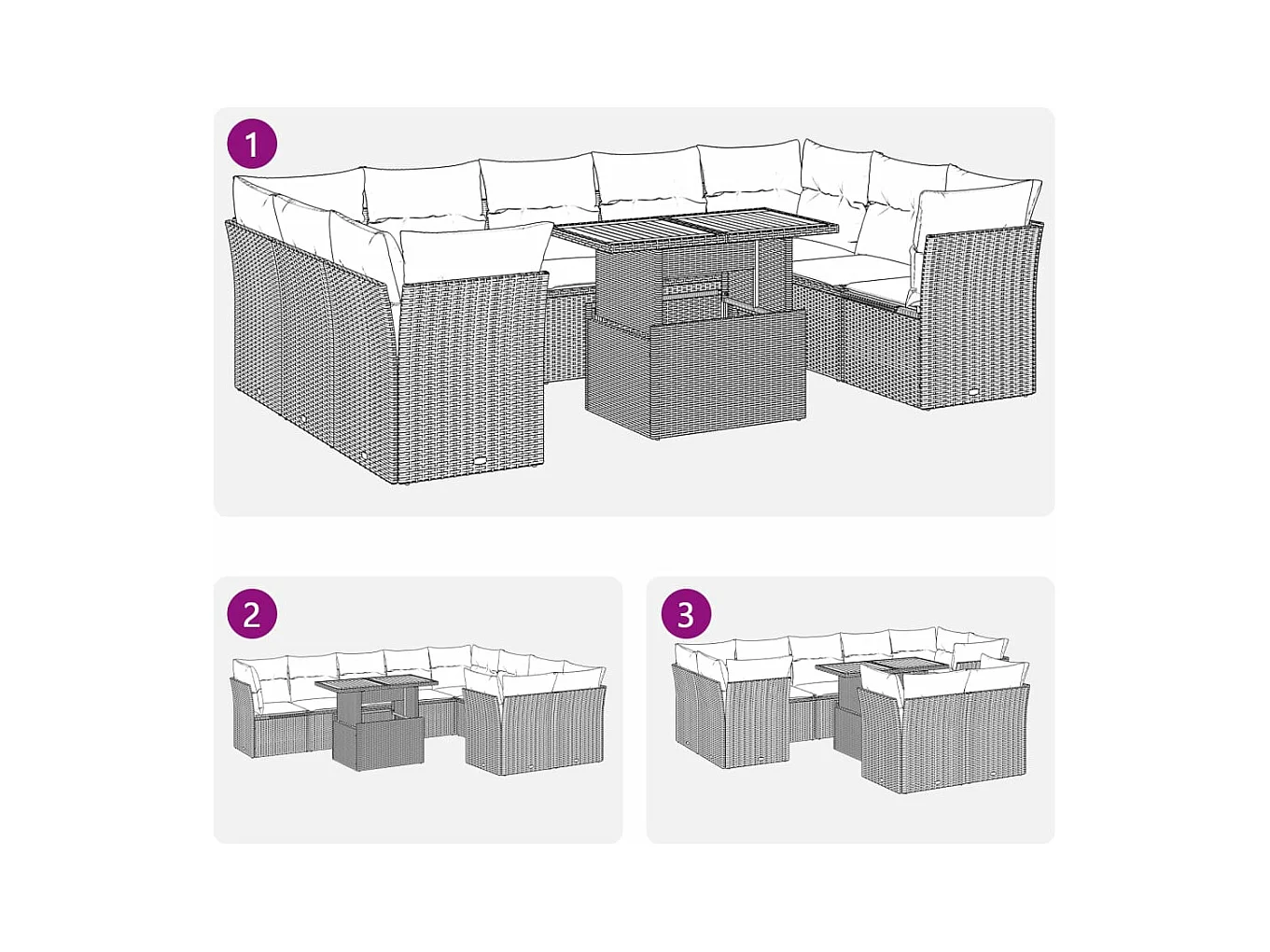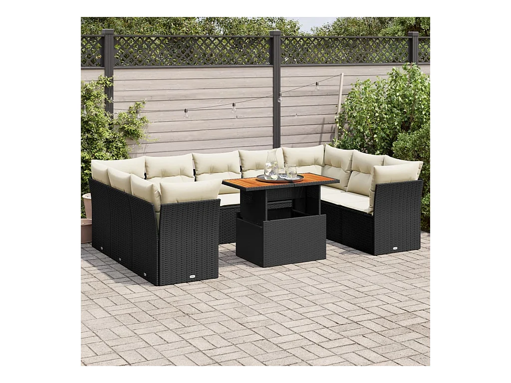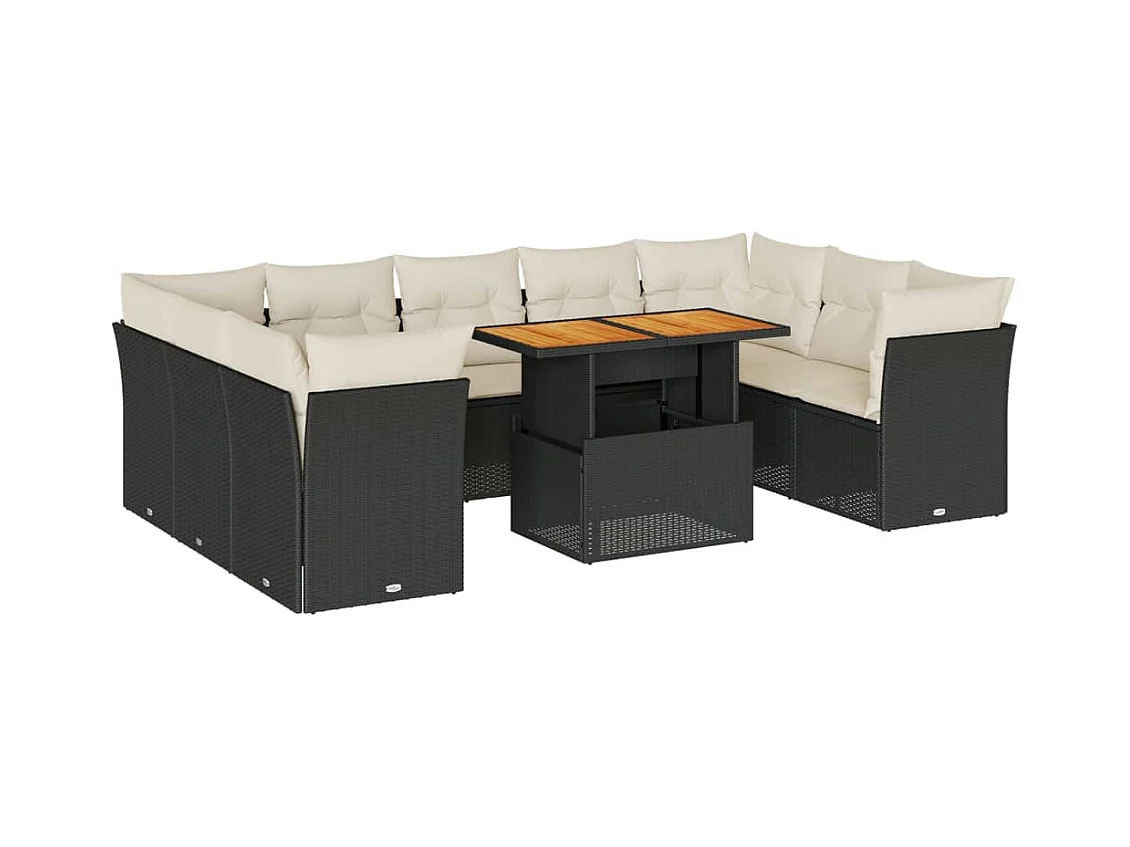 10-delige Loungeset met kussens poly rattan acacia zwart