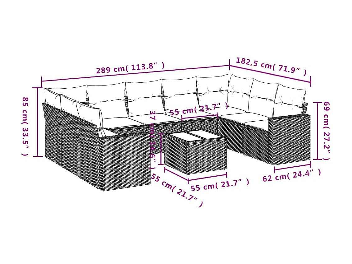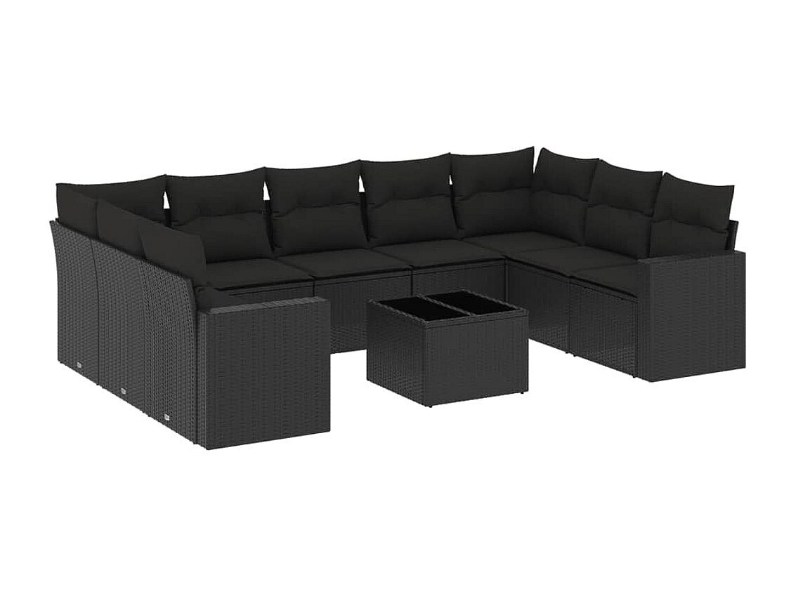 10-delige Loungeset met kussens poly rattan zwart