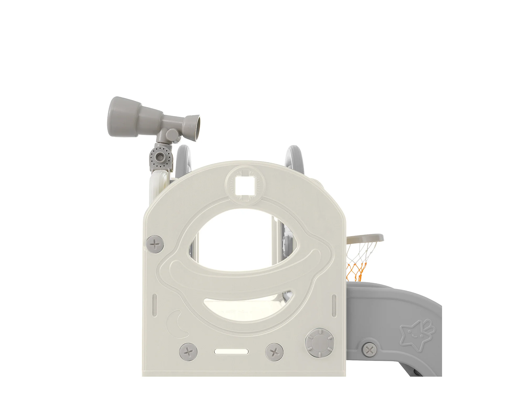 10-in-1 kinderglijbaan 172 x 165 x 95 cm, met glijbaan, basketbalring en tekenbord, wit en grijs HDPE-materiaal