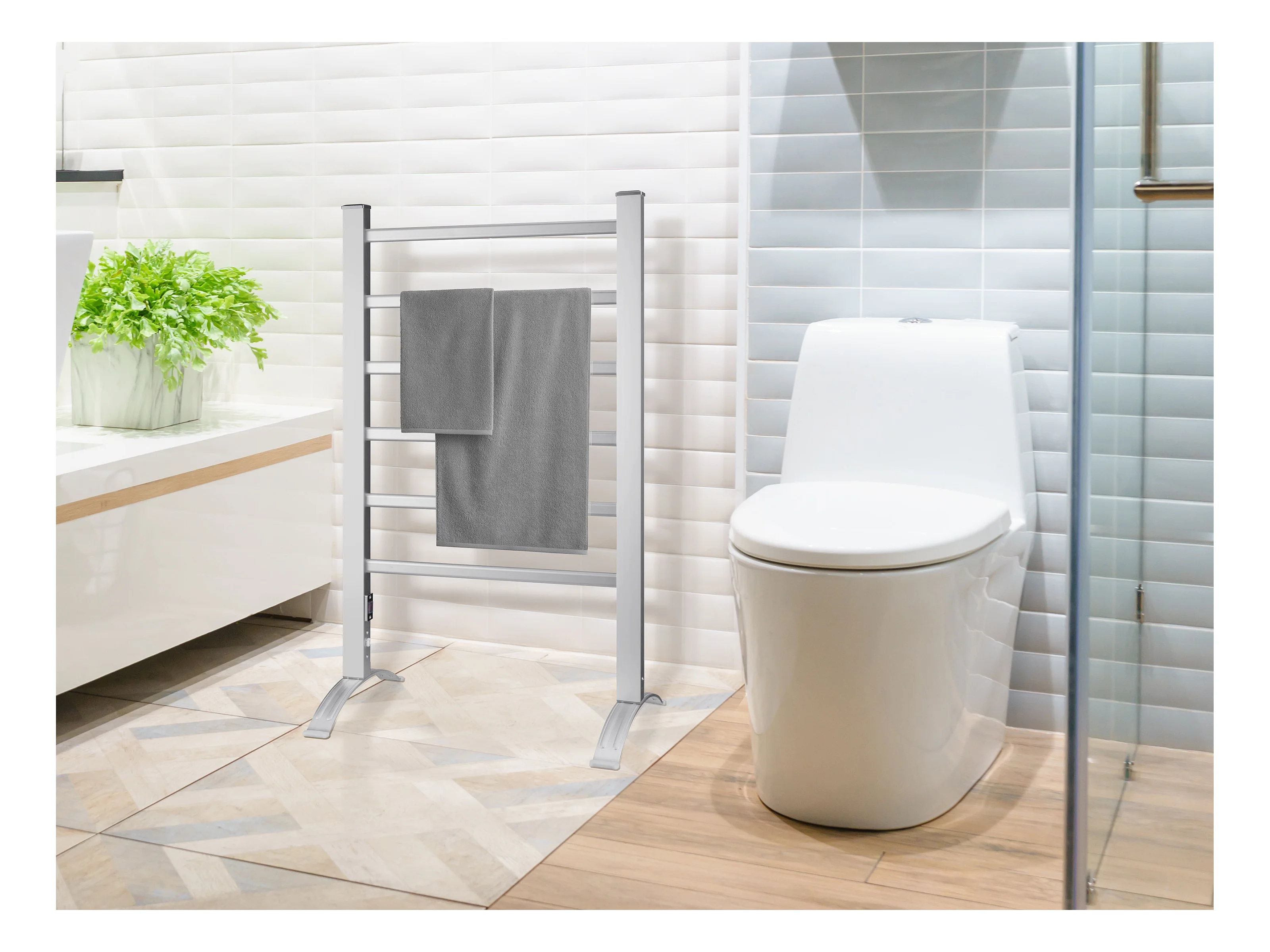 100W vloerstaand elektrisch handdoekenrek in aluminium, zilver