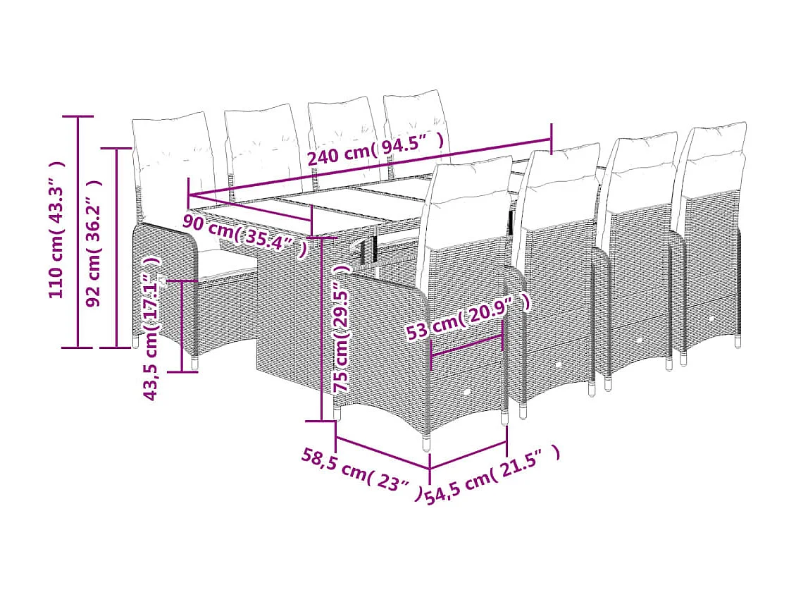 2-delige Tuinset met kussens poly rattan lichtgrijs