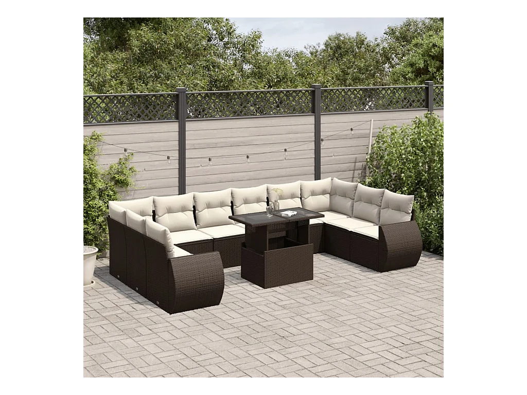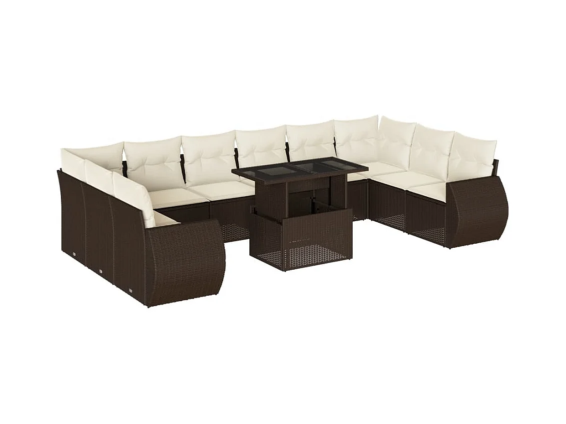 11-delige Loungeset met kussens poly rattan bruin