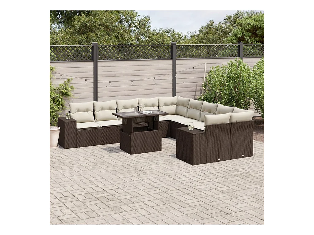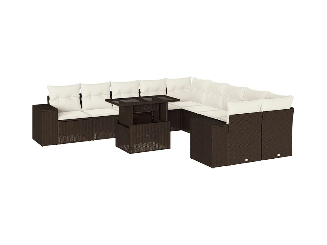 11-delige Loungeset met kussens poly rattan bruin