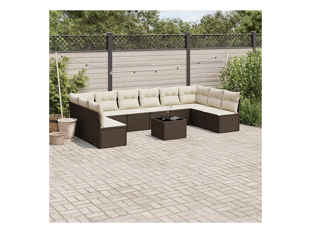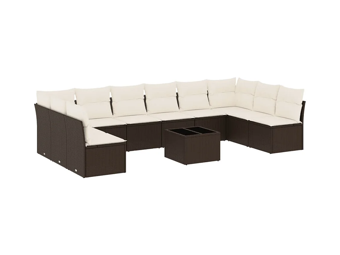 11-delige Loungeset met kussens poly rattan bruin