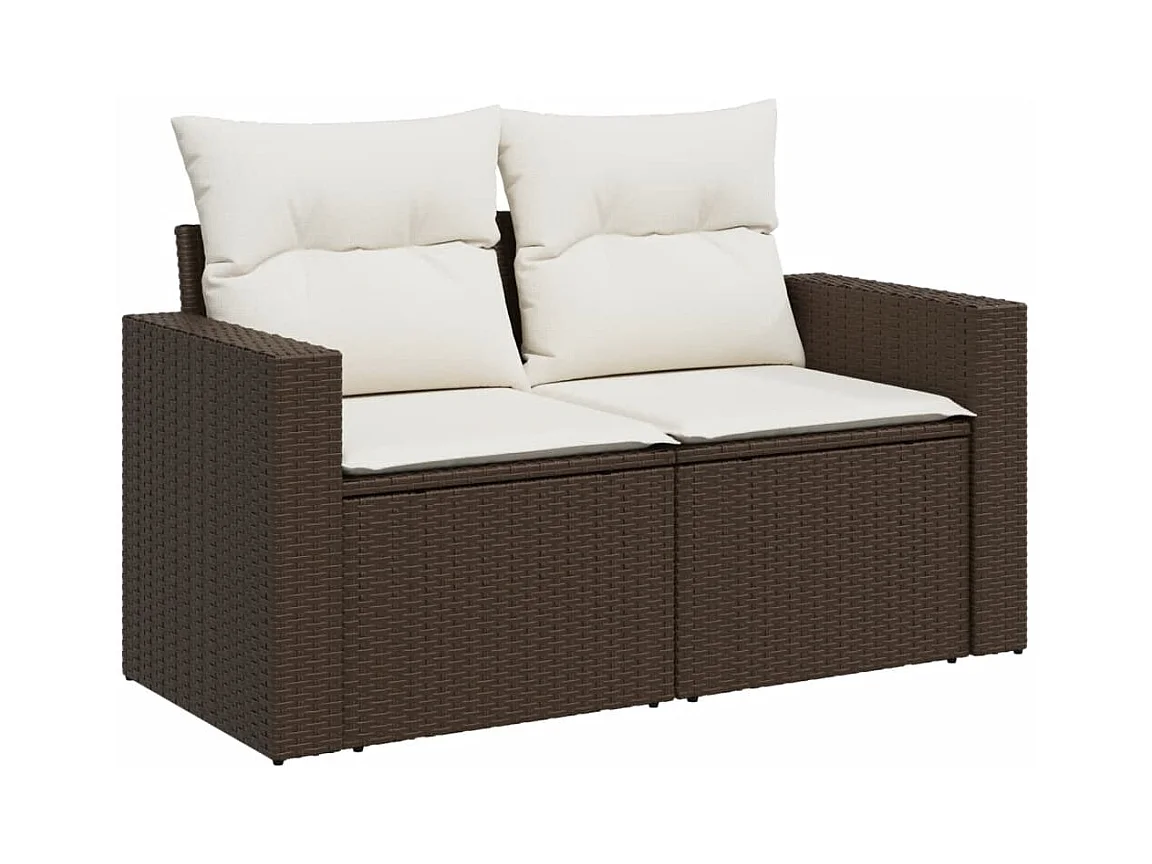 10-delige Loungeset met kussens poly rattan bruin