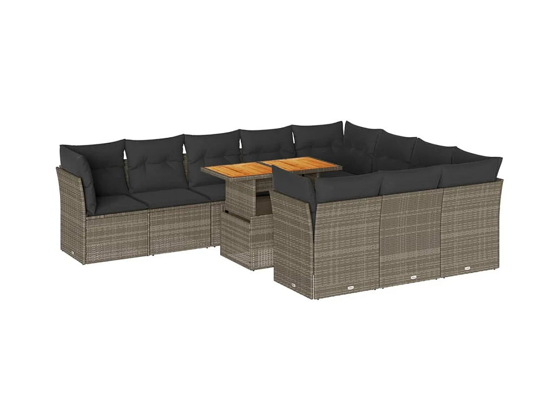 11-delige Loungeset met kussens poly rattan lichtgrijs