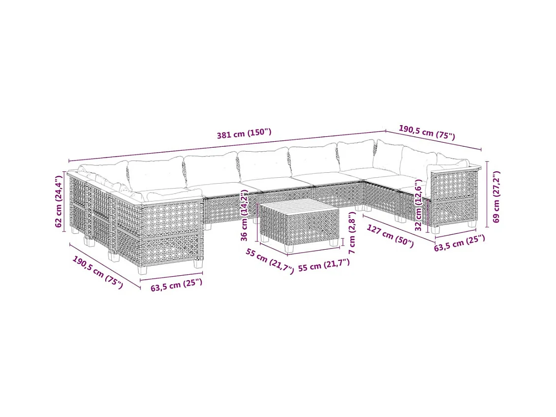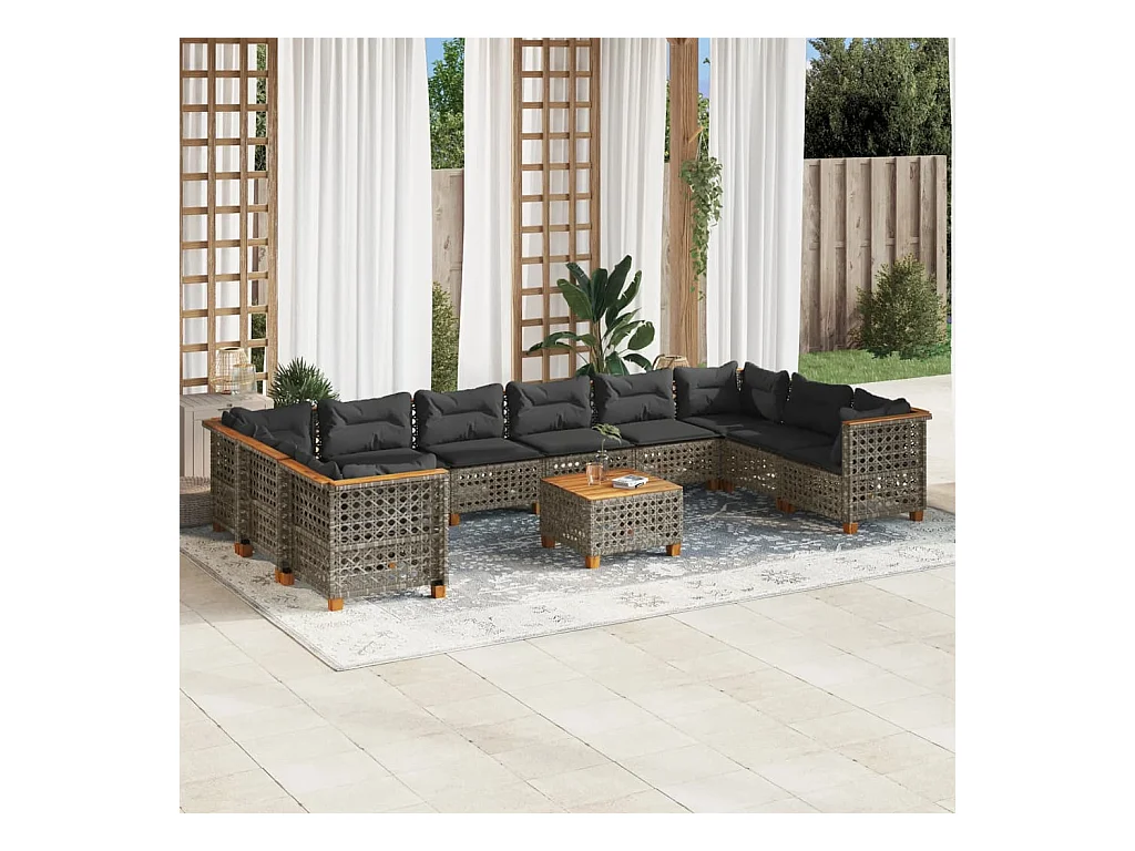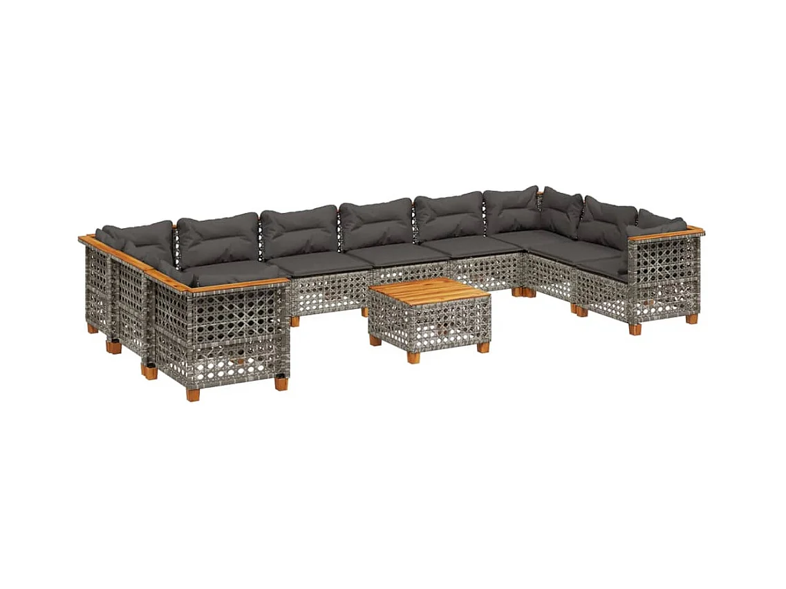 11-delige Loungeset met kussens poly rattan lichtgrijs