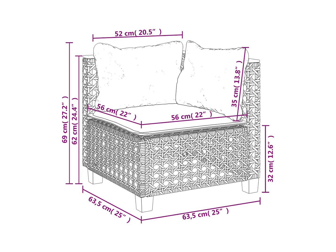 11-delige Loungeset met kussens poly rattan lichtgrijs