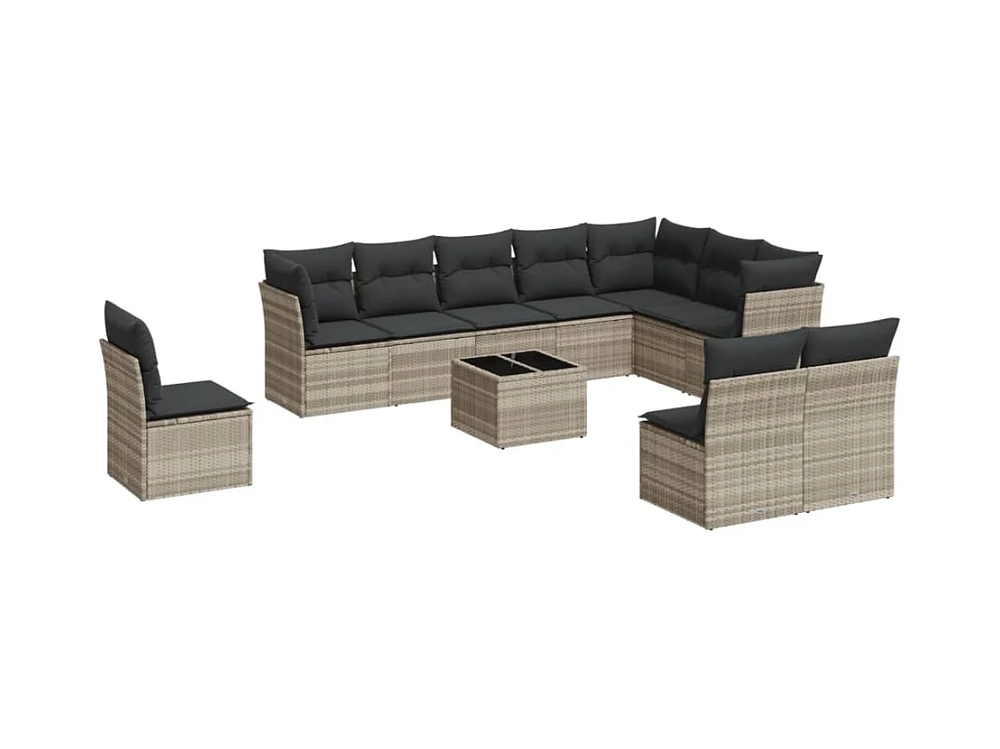 11-delige Loungeset met kussens poly rattan lichtgrijs