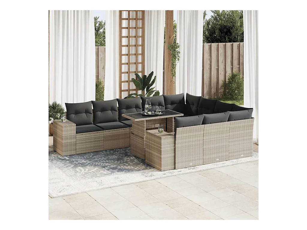 11-delige Loungeset met kussens poly rattan lichtgrijs