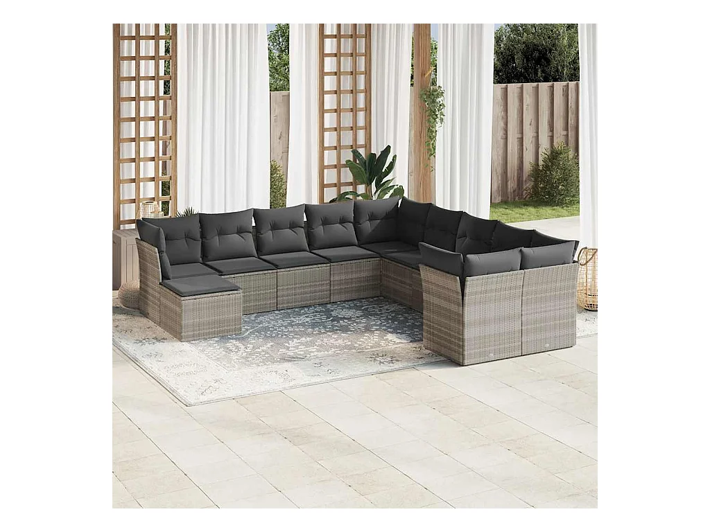 11-delige Loungeset met kussens poly rattan lichtgrijs