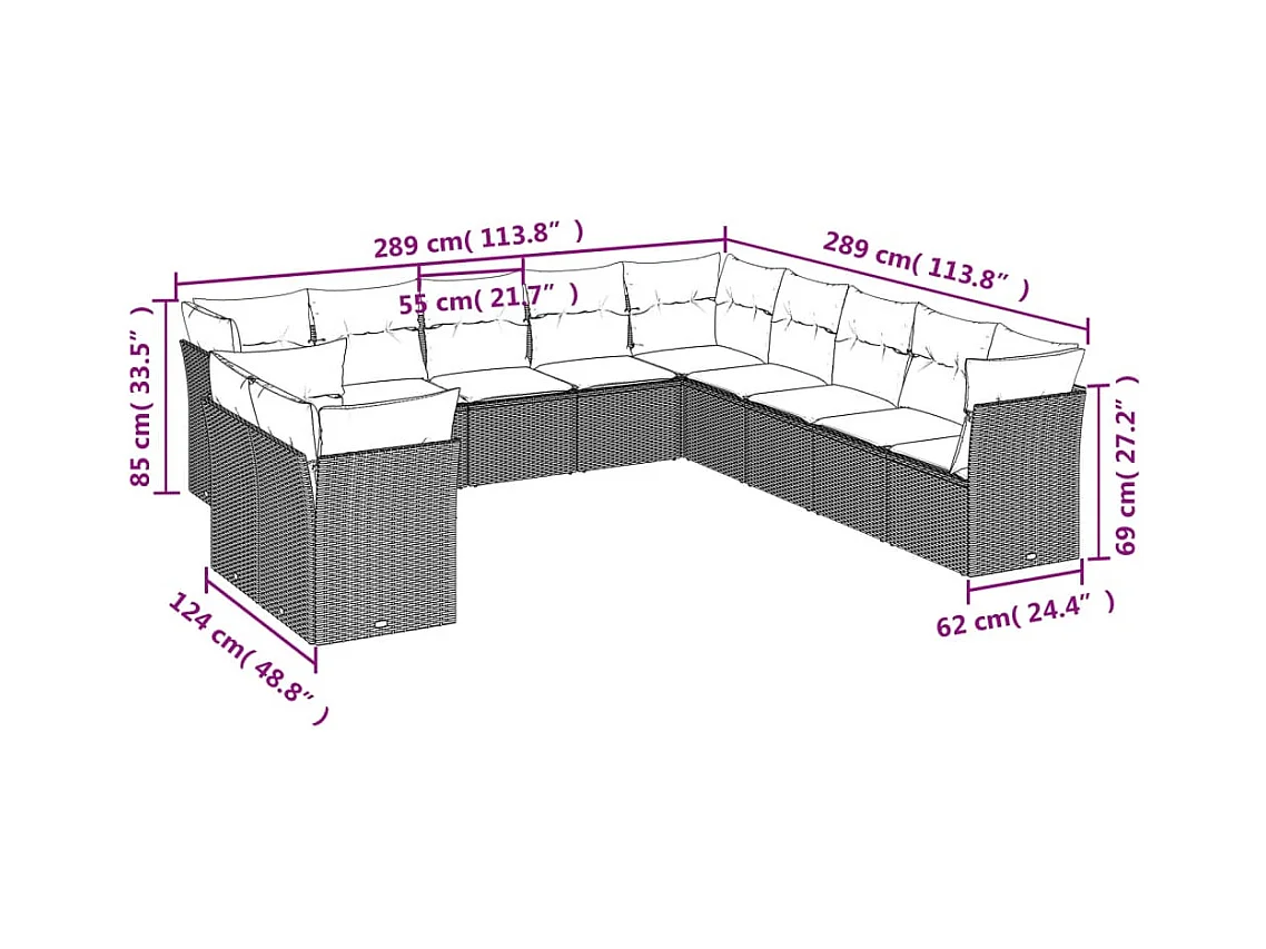11-delige Loungeset met kussens poly rattan lichtgrijs