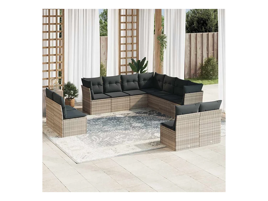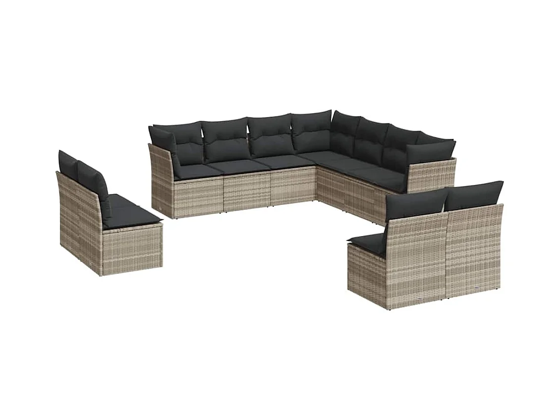 11-delige Loungeset met kussens poly rattan lichtgrijs