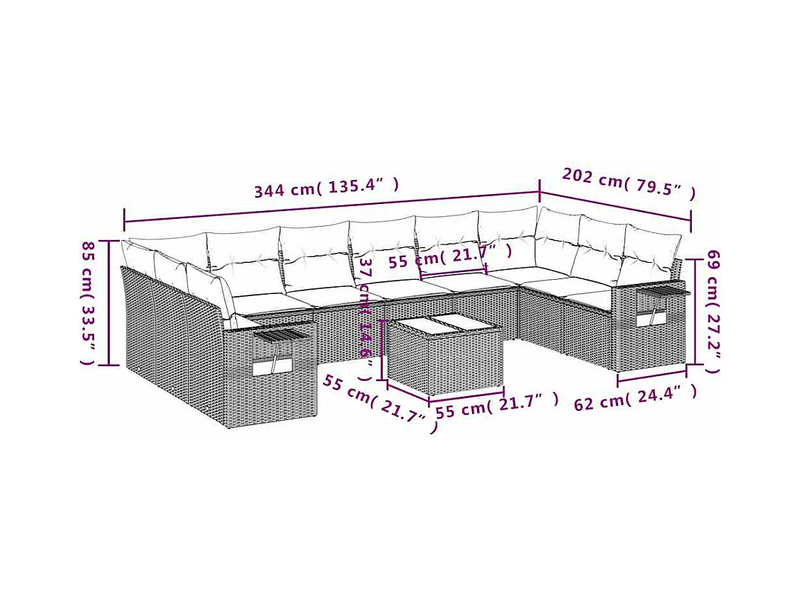 12-delige Loungeset met kussens poly rattan lichtgrijs