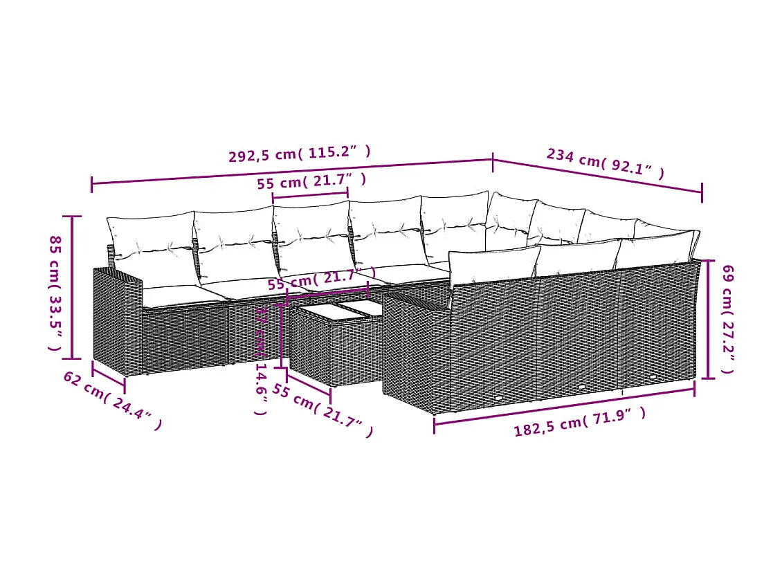 11 stuks tuinmeubelen met zwart geweven harskussens