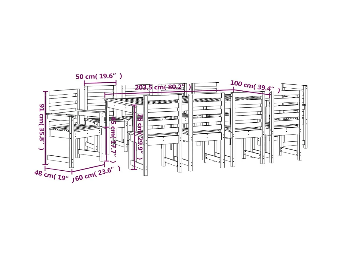 11-delige Tuinset massief grenenhout