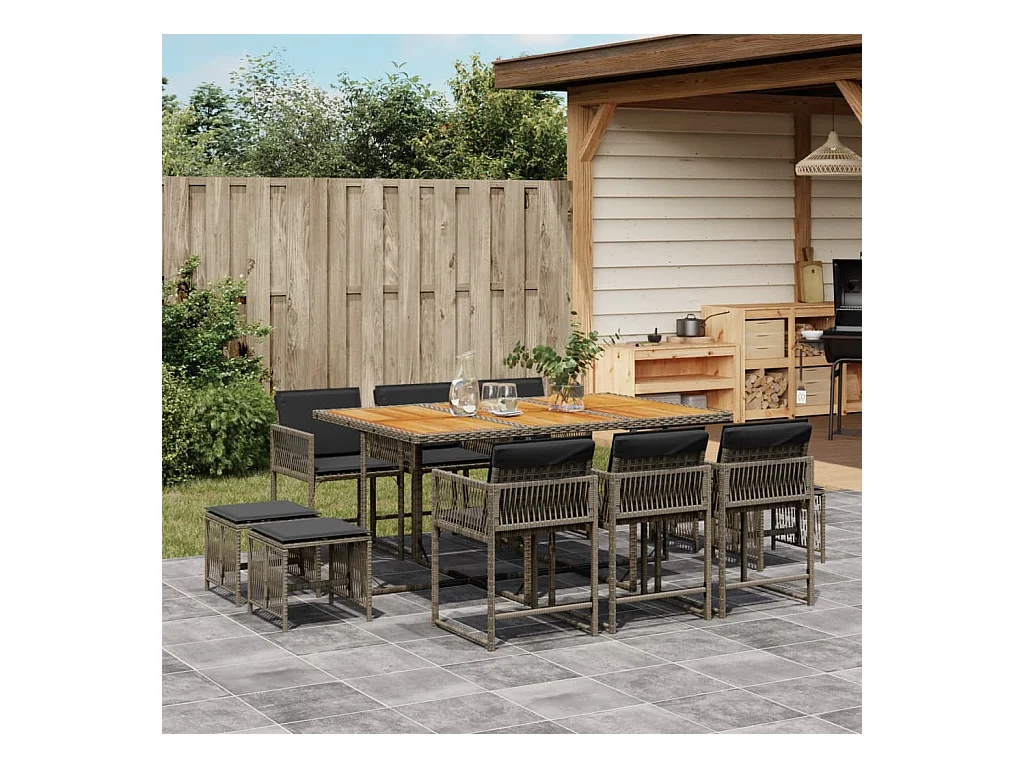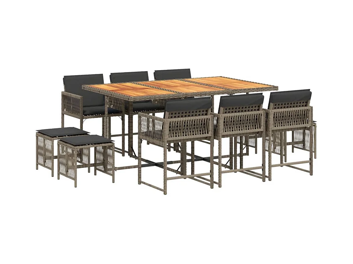 11-delige Tuinset met kussens poly rattan grijs