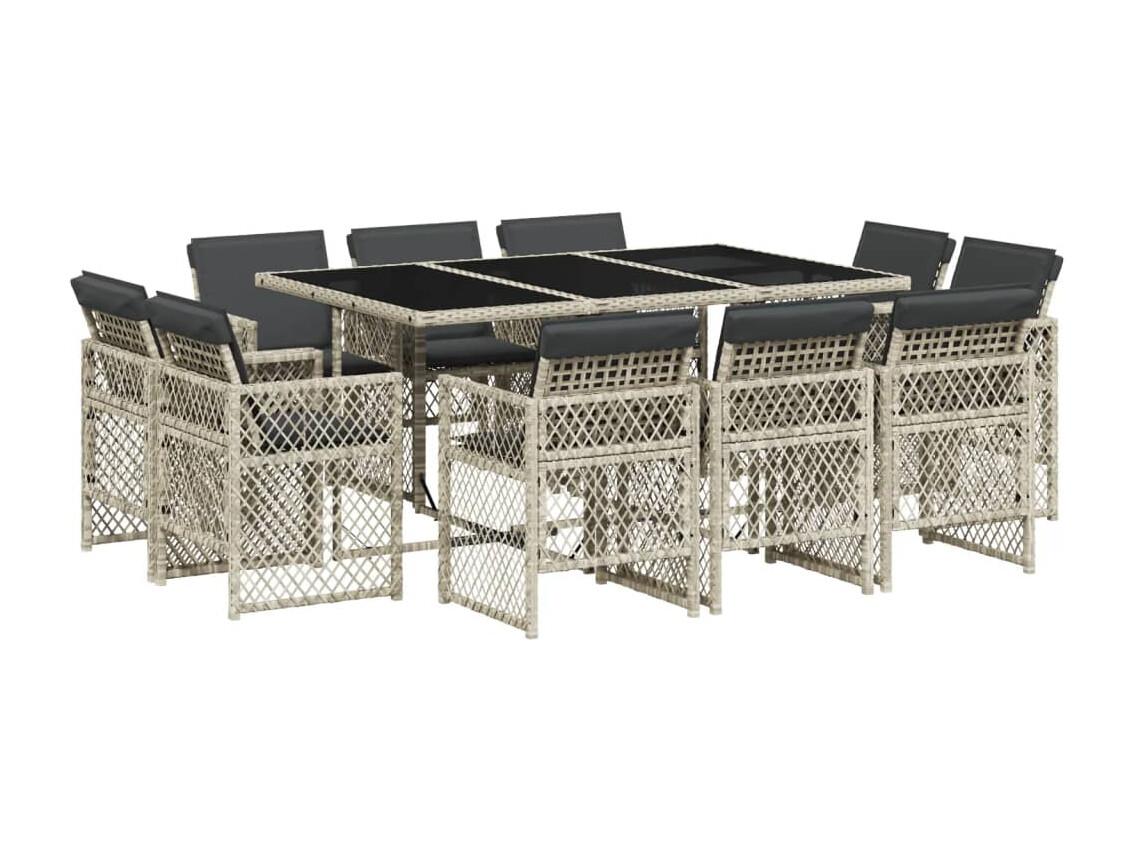 11-delige Tuinset met kussens poly rattan lichtgrijs