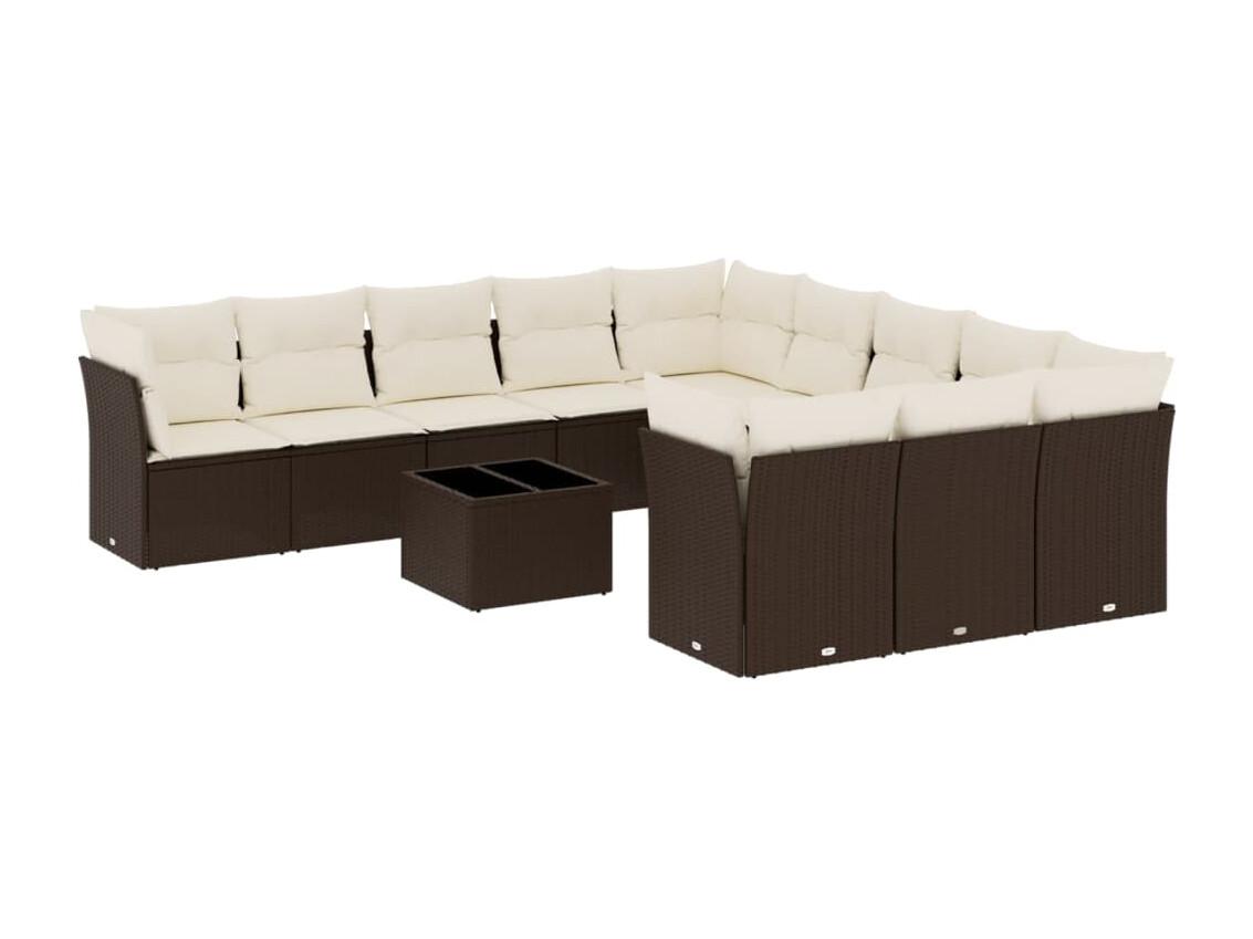 12-delige Loungeset met kussens poly rattan bruin