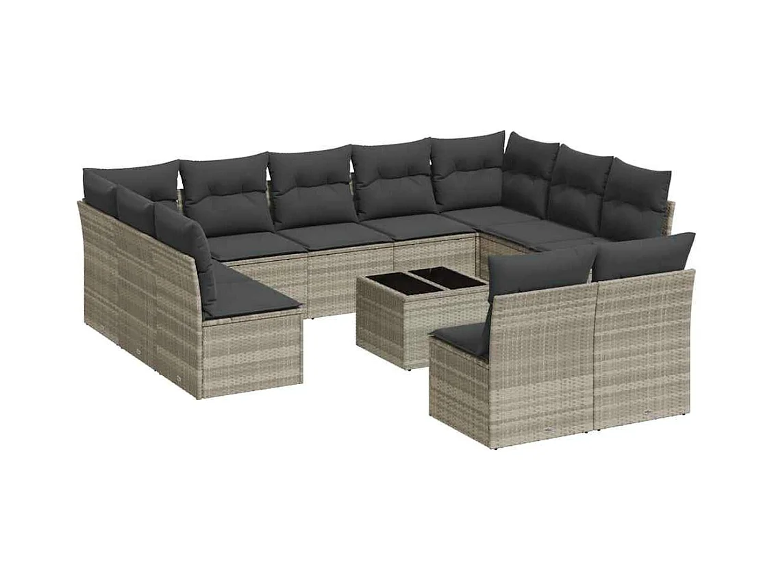 12-delige Loungeset met kussens poly rattan lichtgrijs