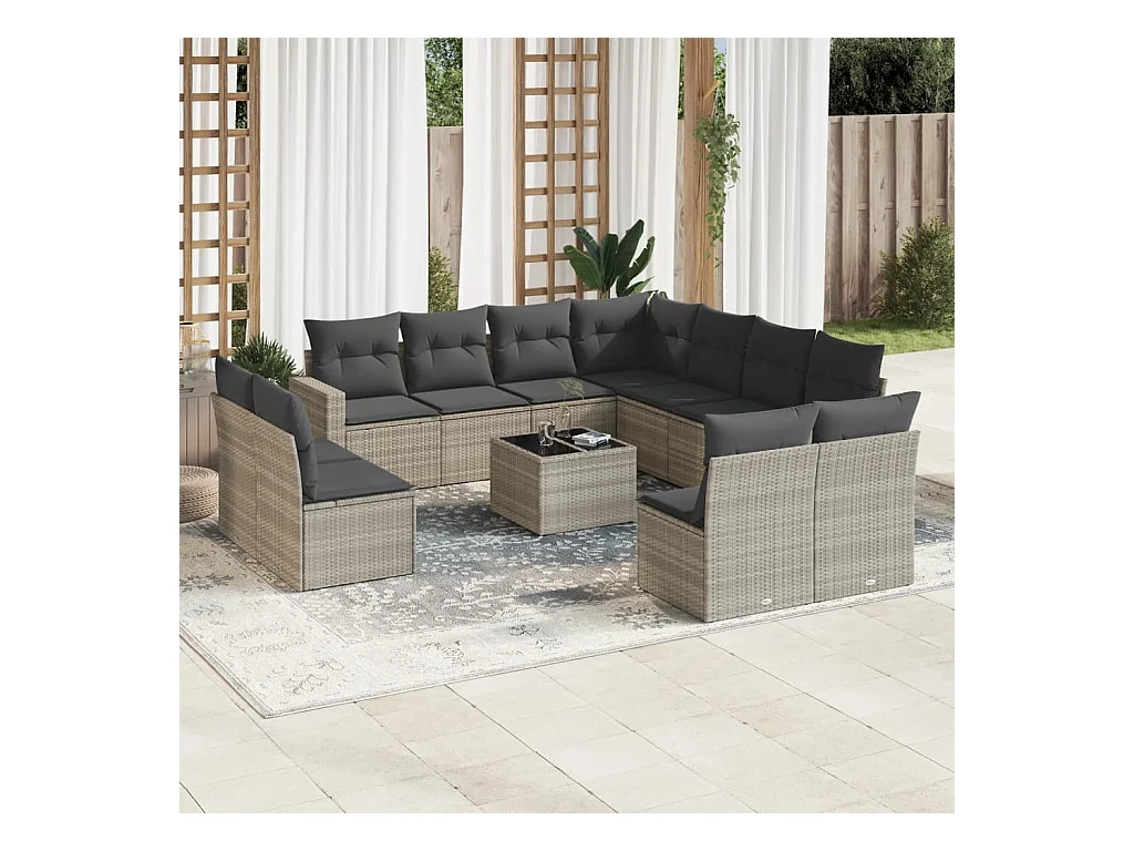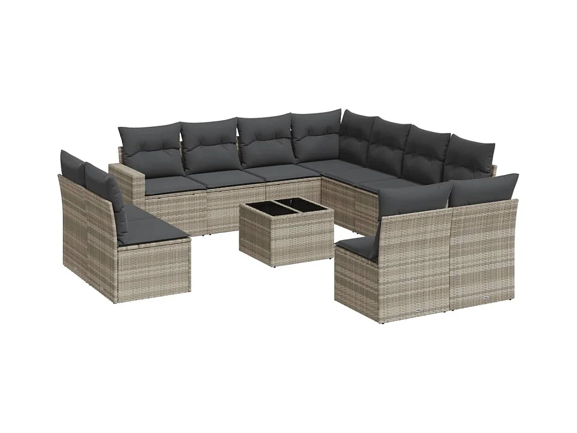 12-delige Loungeset met kussens poly rattan lichtgrijs