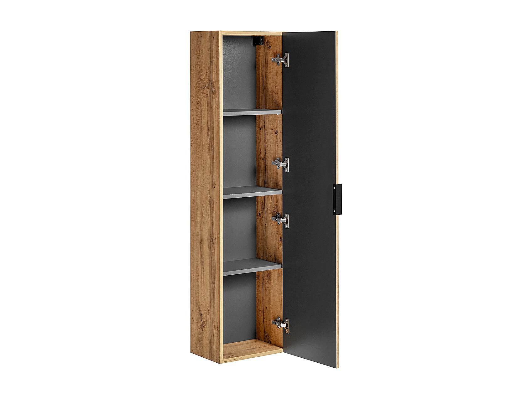 Badkamerset: kast met laden, kast met deuren en plank 57×46×180 cm, kleur: Craft Eik / Cashmere, zwarte handgreep
